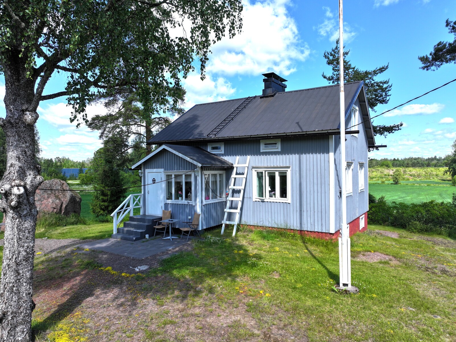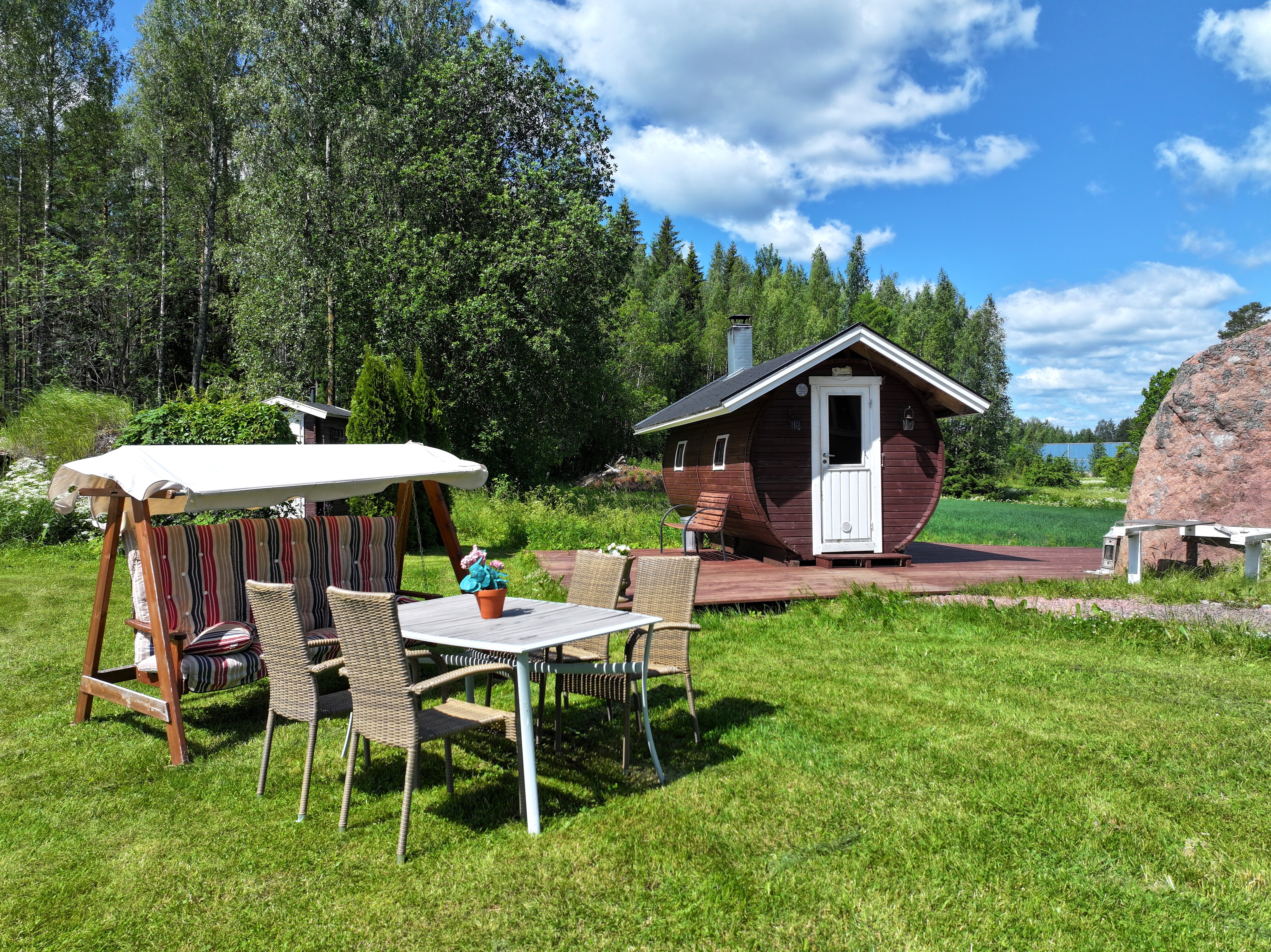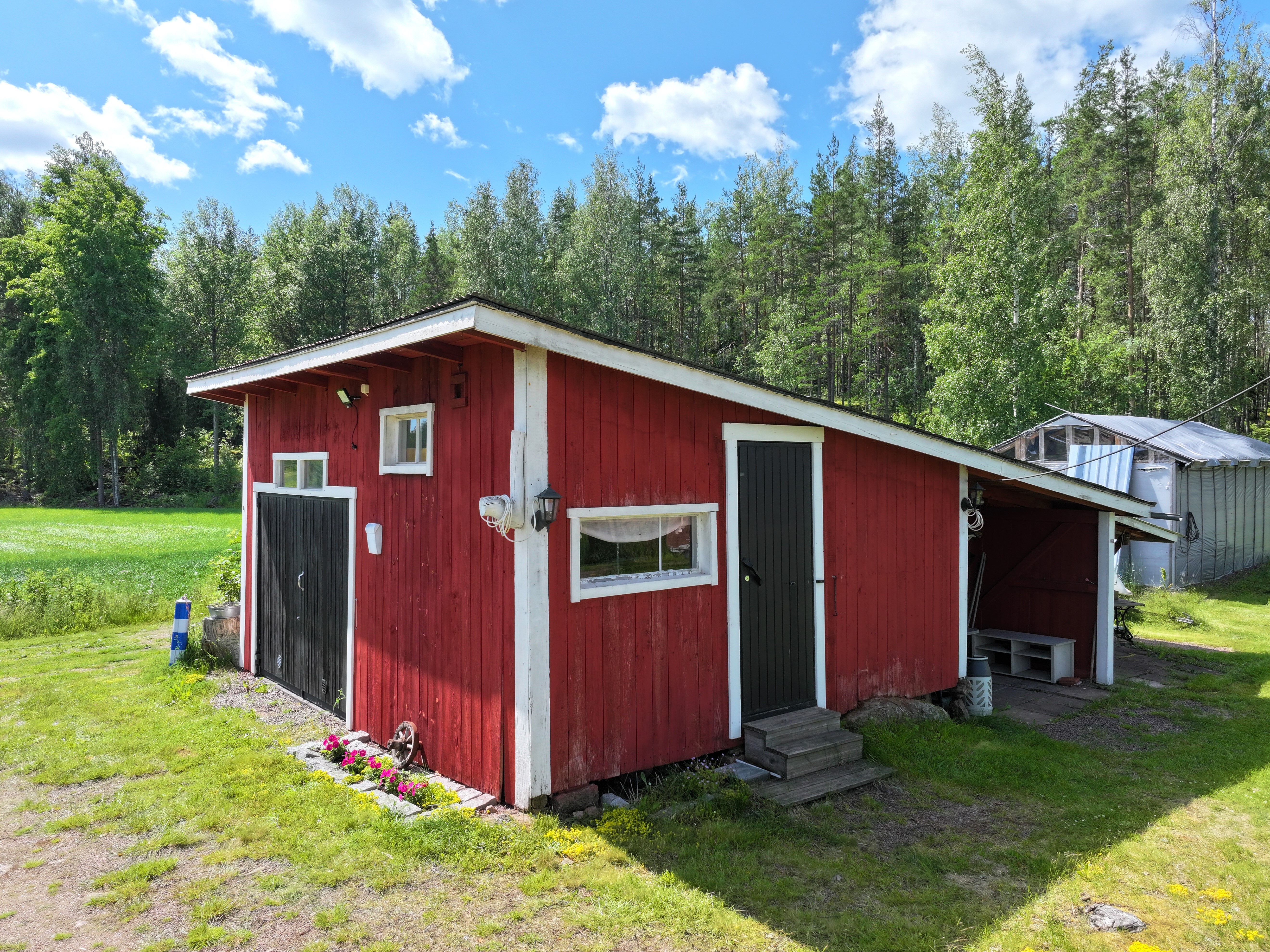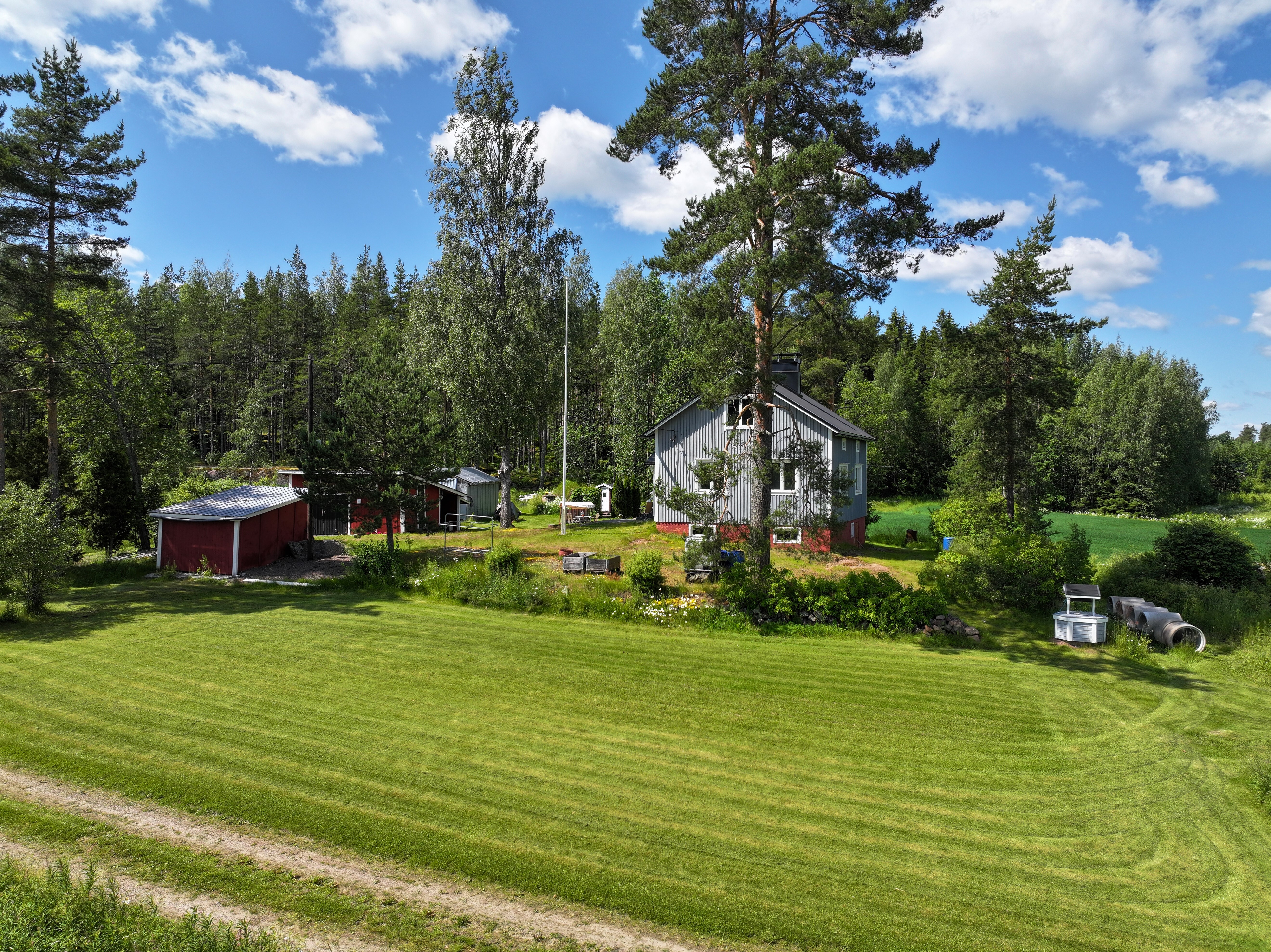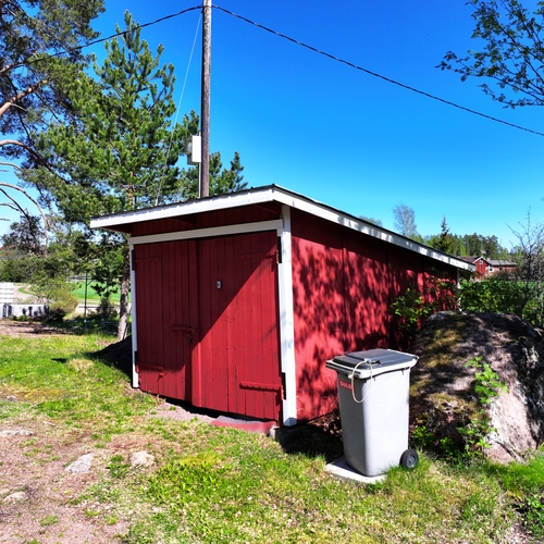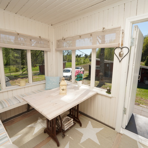 Pyhtäällä, muutaman minuutin ajomatkan päässä Hki – Kotka -moottoritieltä sijaitseva, peltojen ja luonnon ympäröimä hirsirakenteinen omakotitalo. Päärakennuksessa on viimeisen kymmenen vuoden aikana uusittu keittiön lisäksi lattia-, seinä- ja kattopintoja, joten yleisilme on raikas ja valoisa. Kuistilla kelpaa juoda aamukahvit näkymistä nauttien, lisätilaa saa tarvittaessa niin avovintistä kuin kellaristakin. Tontilla on päärakennuksen lisäksi muun muassa tynnyrisauna, autotalli, varastotilaa ja kesähuone vaikkapa työ-/yöpymistilaksi. Kokonaisuus on ollut vapaa-ajankäytössä ja soveltuu tähän hyvin, mutta vakituiseen asumiseen tämä kohde kaipaisi jonkin verran lisämukavuuksia.