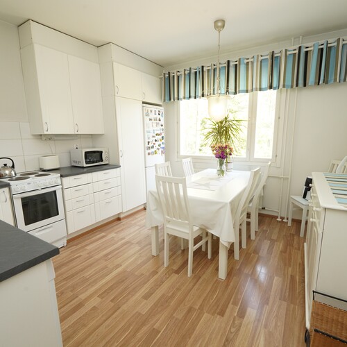 Rauhallisessa taloyhtiössä, siistikuntoinen ja valoisa läpitalon neliö lasitetulla parvekkeella. Lähistöllä sijaitsevan kaupan, päiväkodin ja luonnon lisäksi keskustan kaikki palvelut lyhyen kävelymatkan päässä. Kolme makuuhuonetta ja koulujen läheisyys tekevät tästä hyvän vaihtoehdon myös perheen kodiksi tai muutenkin tilaa tarvitsevalle.