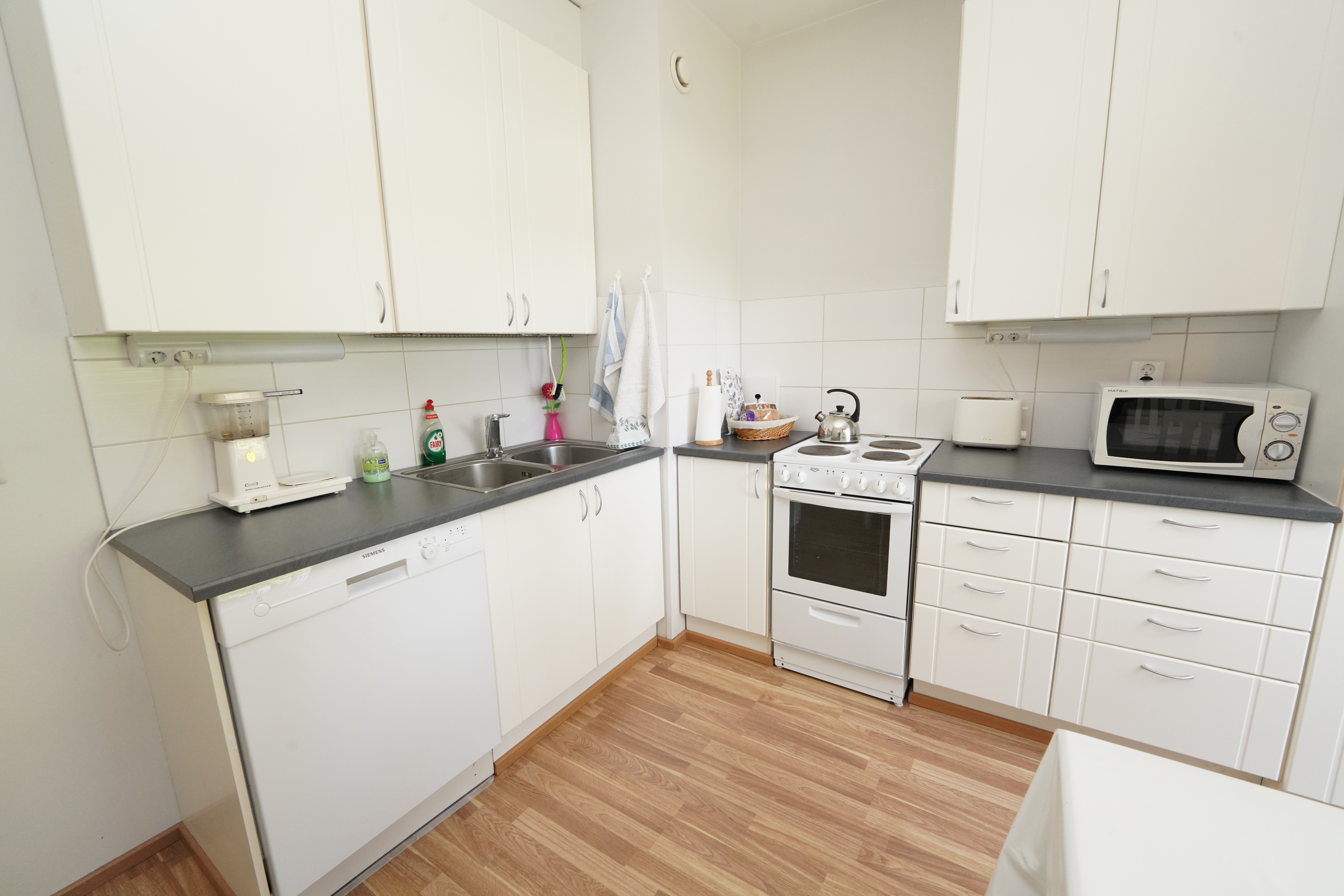 Varusteet: jääkaappipakastin, astianpesukone, sähköliesi
