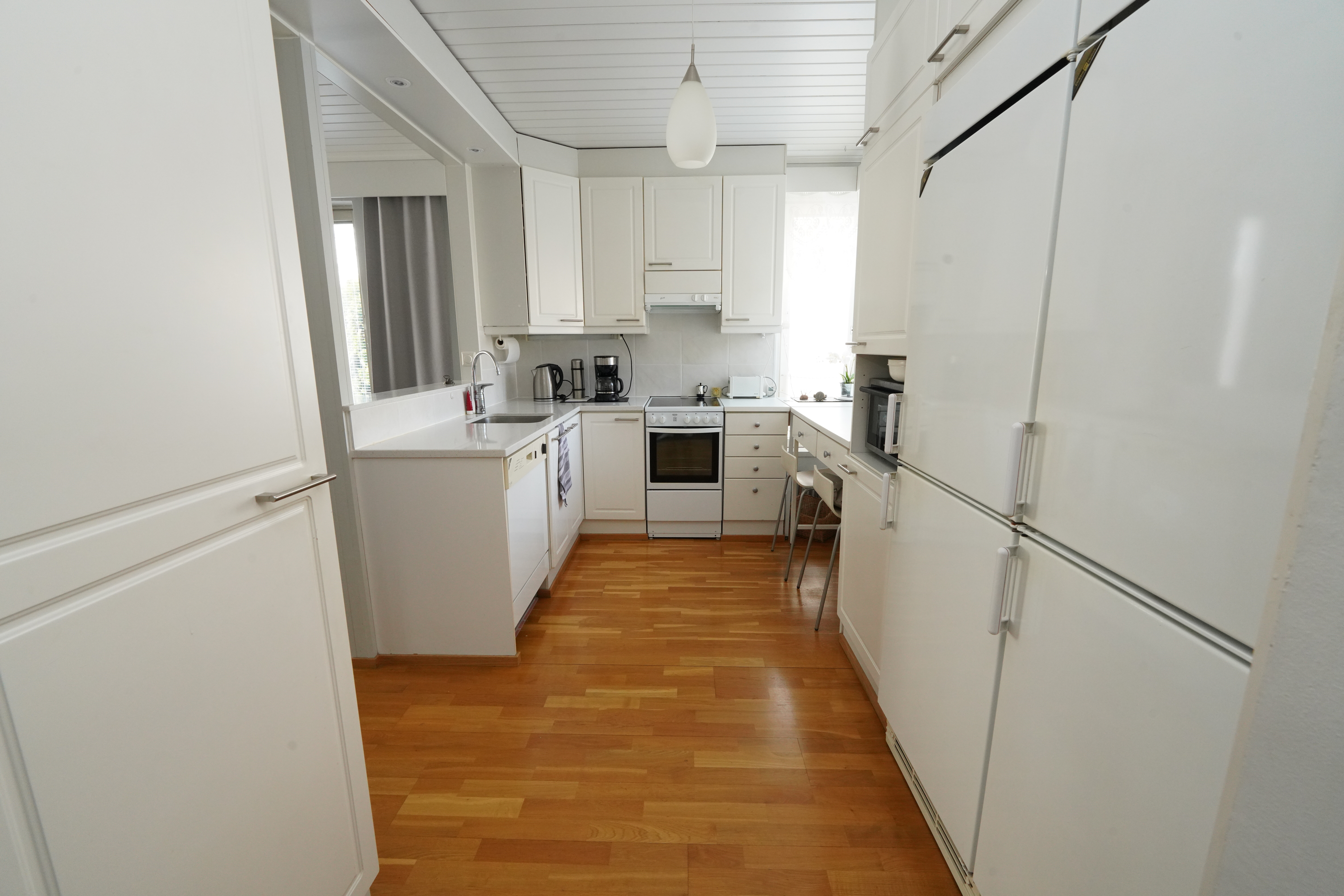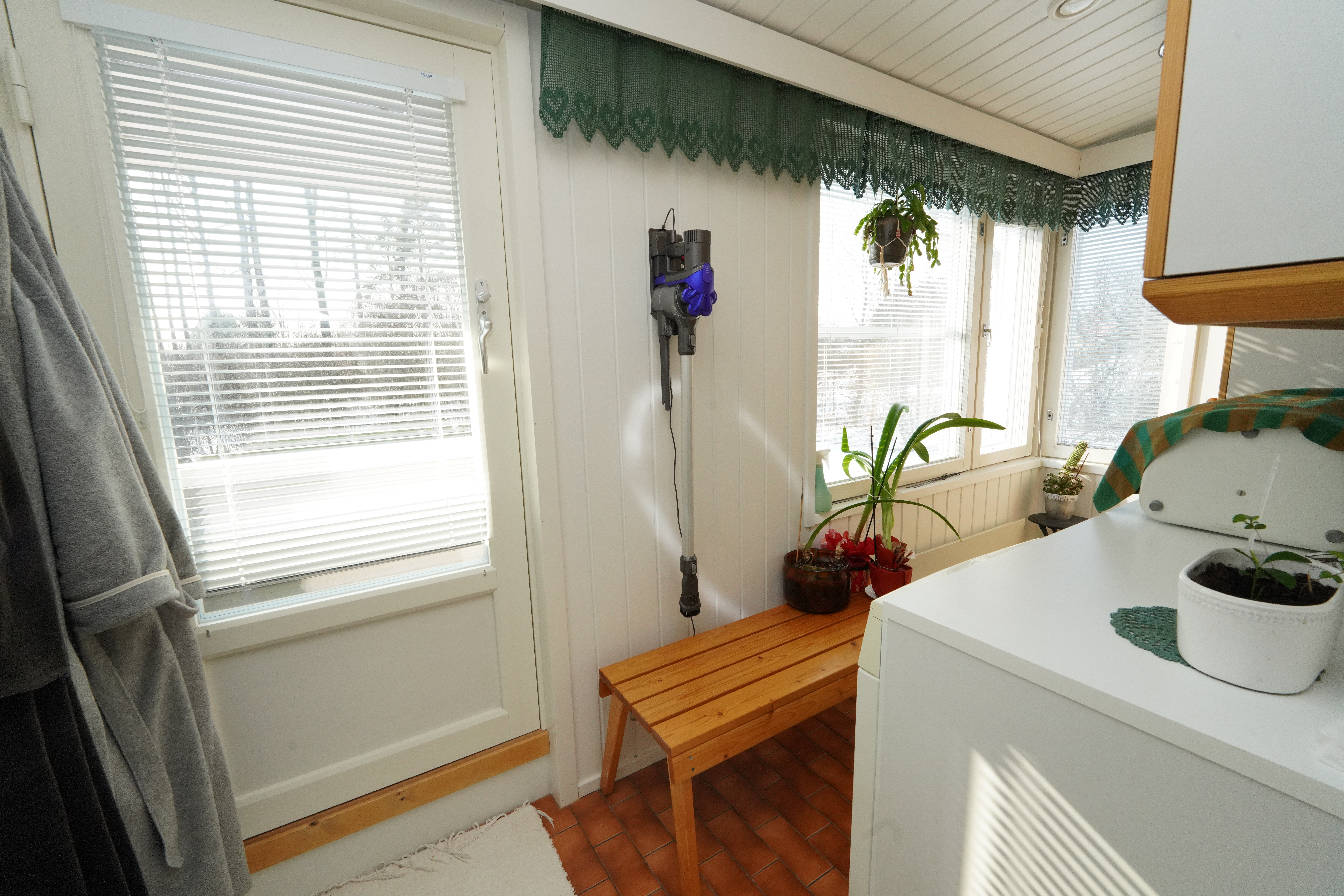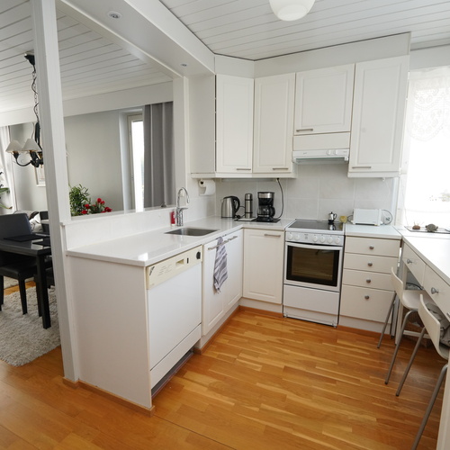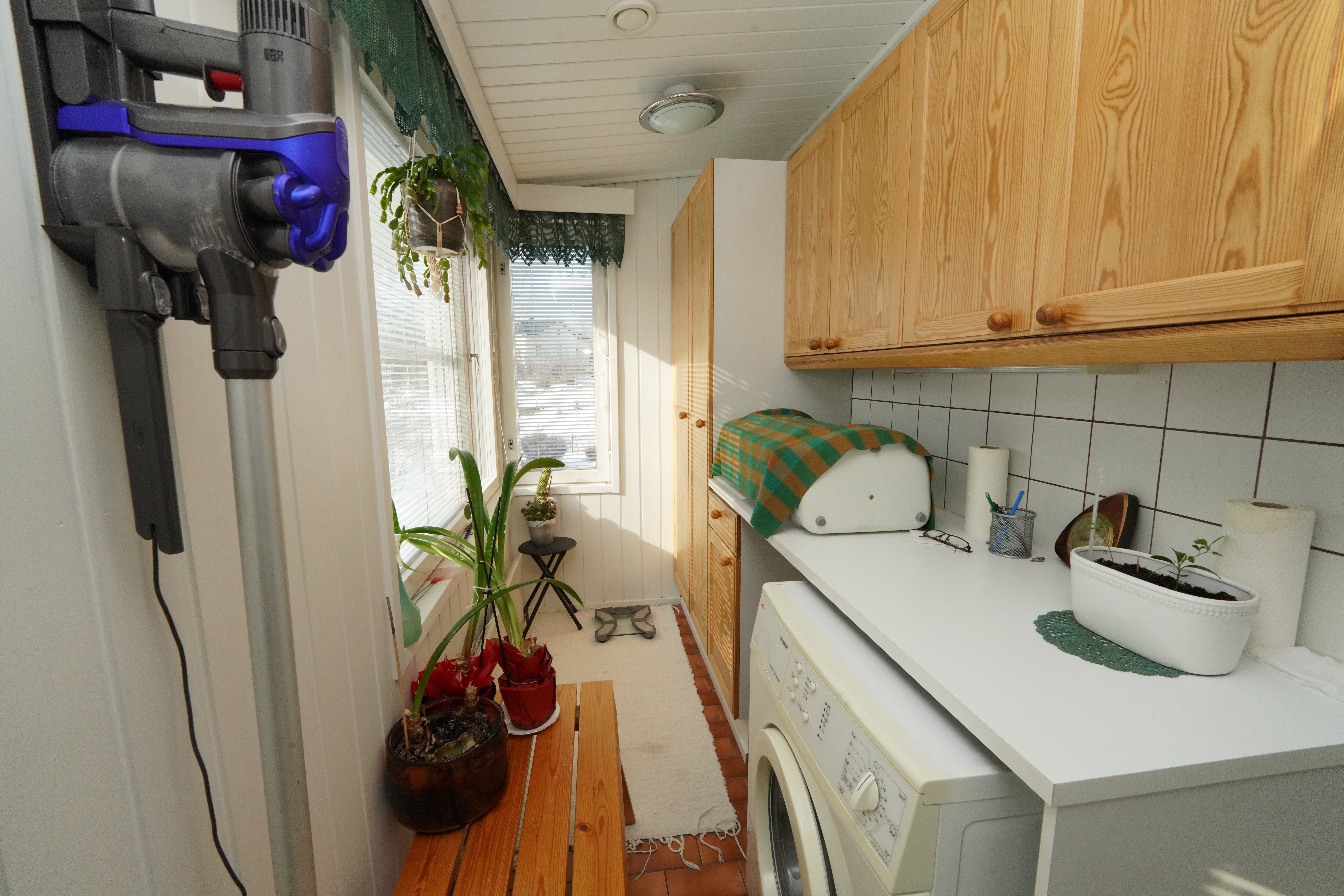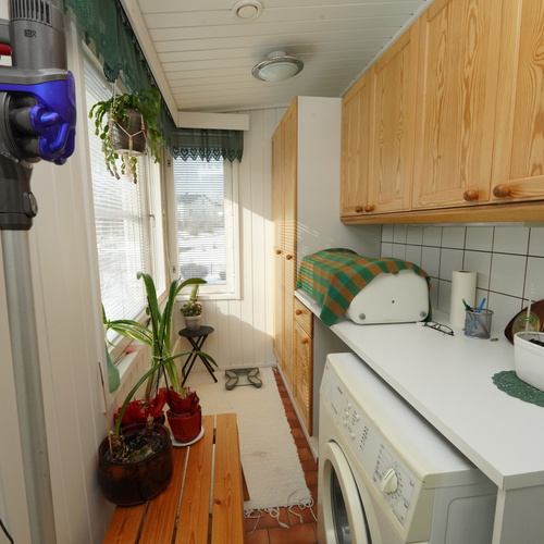 Varusteet: lattiakaivo, pyykkikaapit, pöytätaso, pesukoneliitäntä