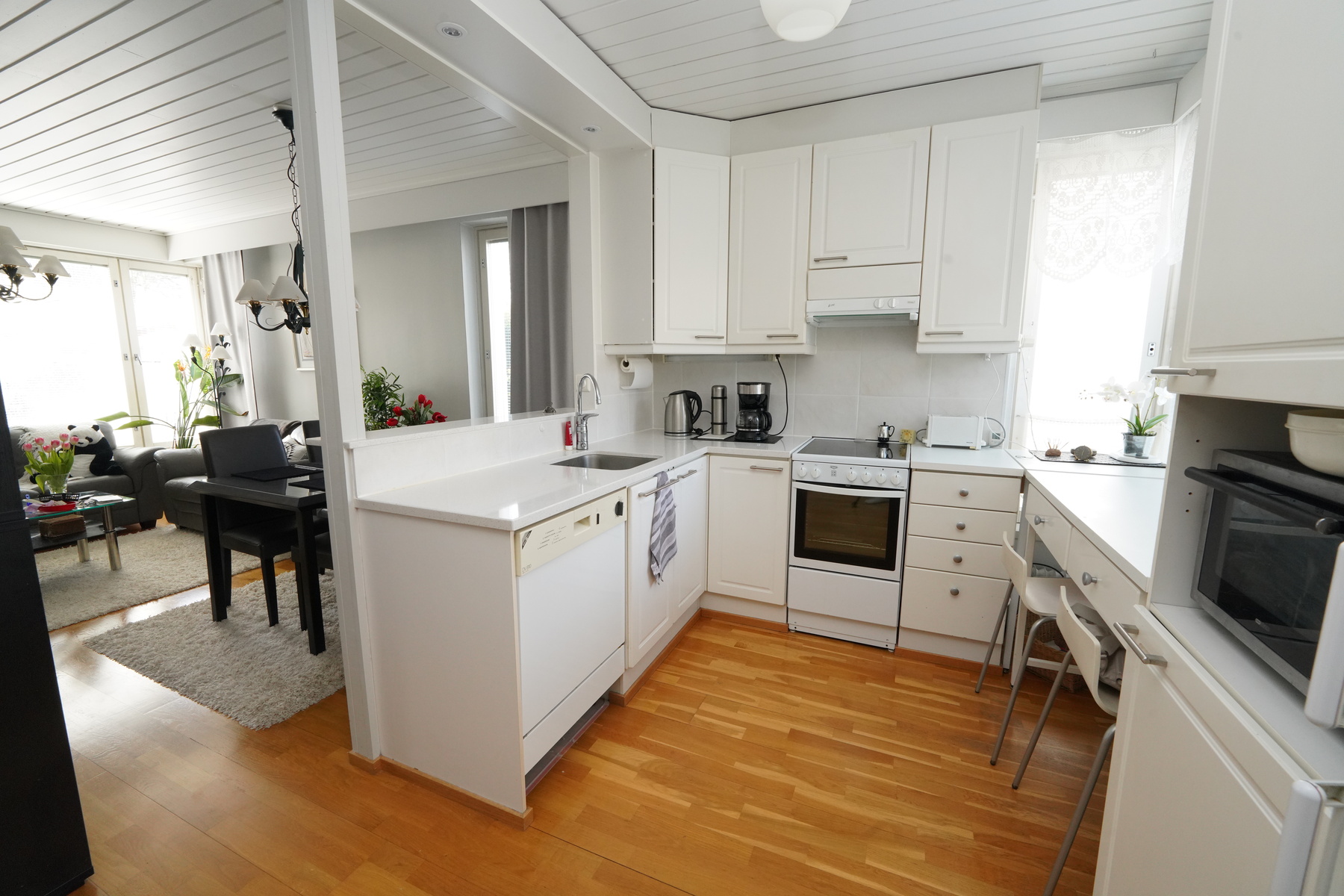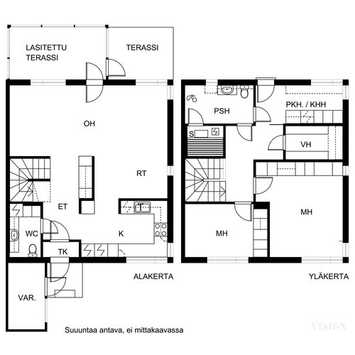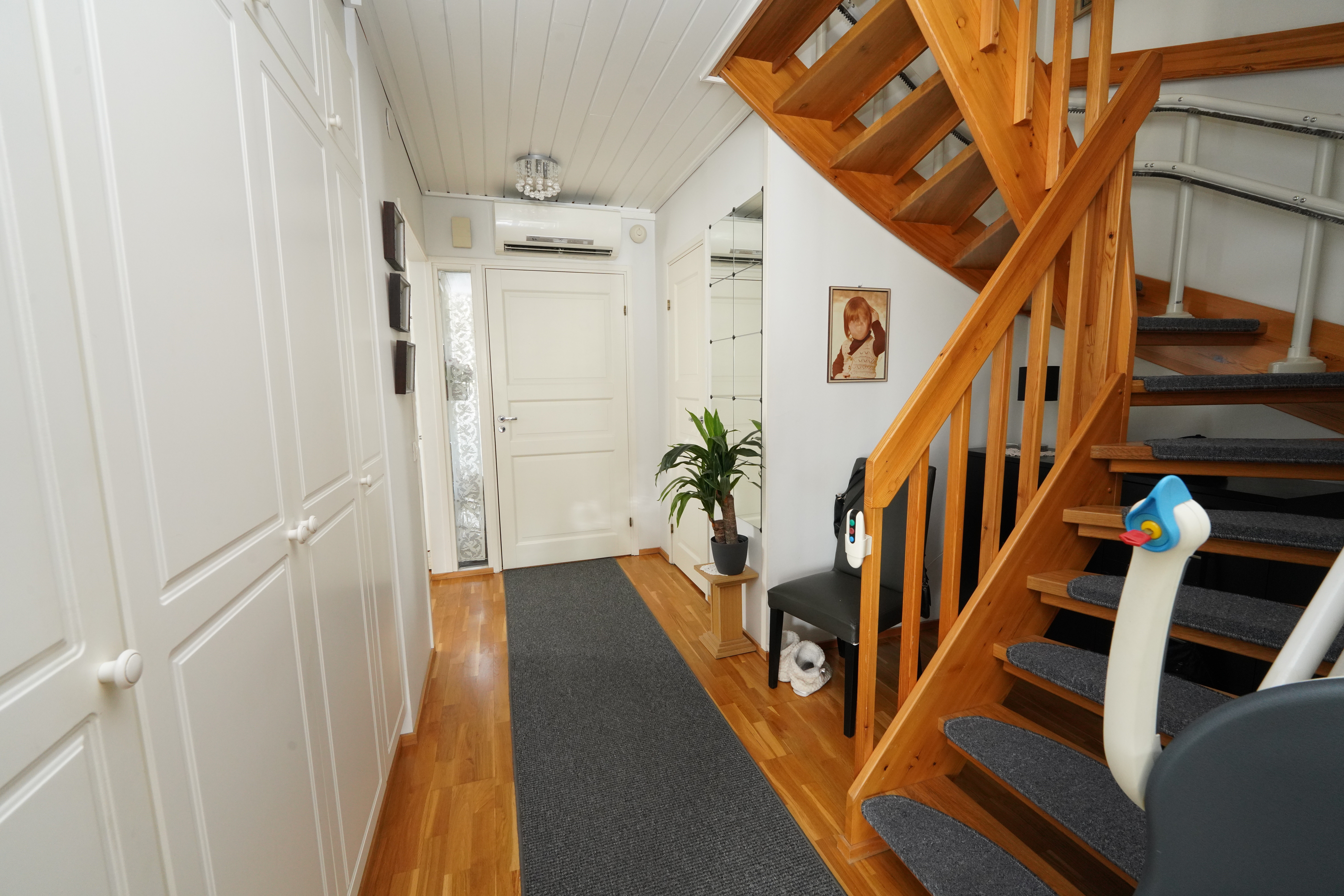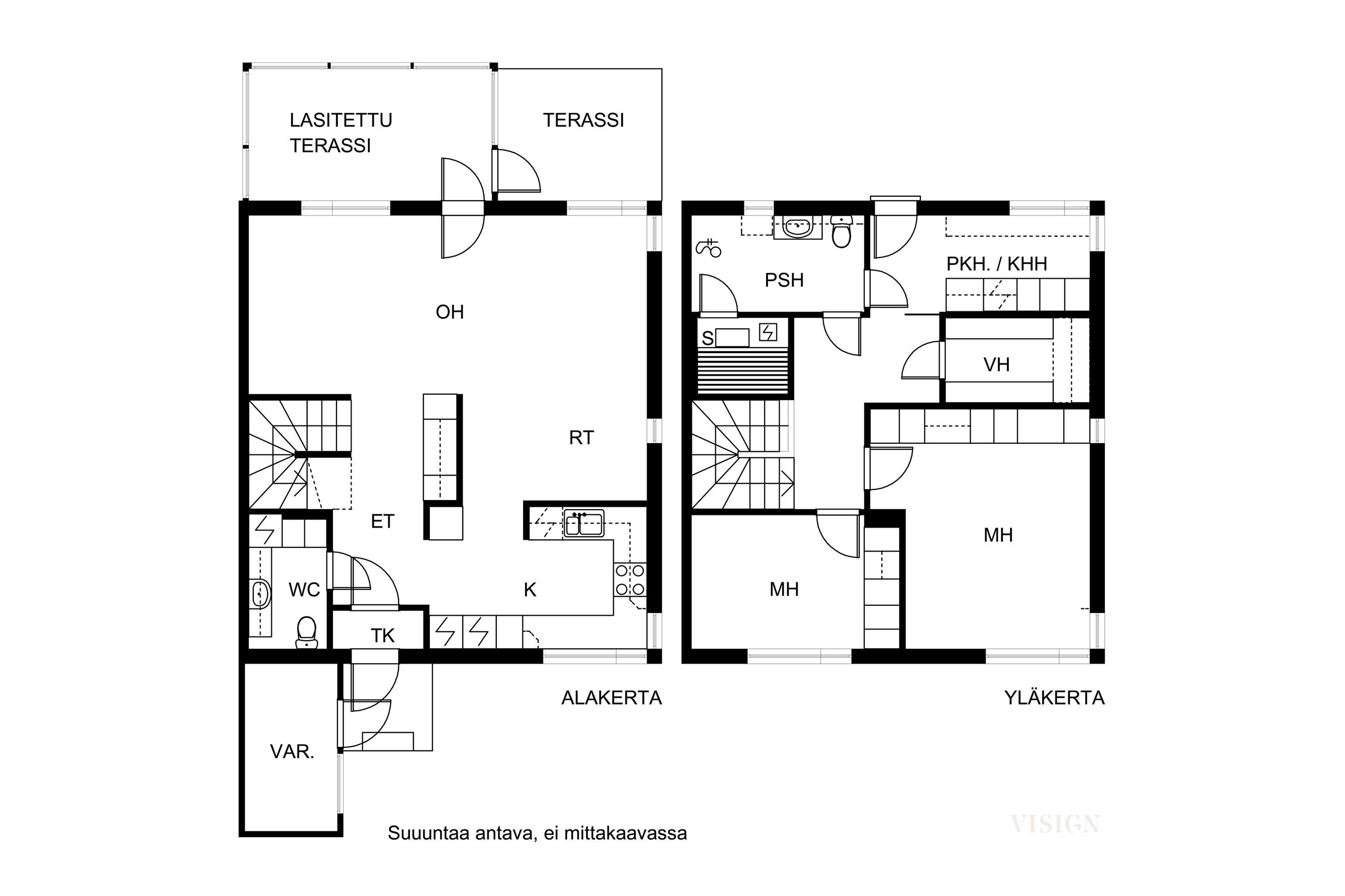 Varusteet: lattiakaivo, pyykkikaapit, pöytätaso, pesukoneliitäntä