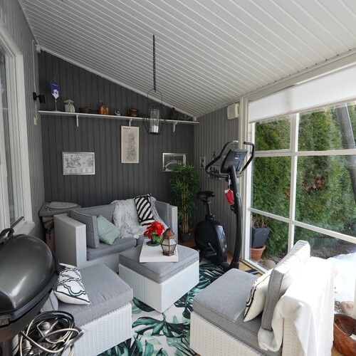 Garnisonissa, historiallisten linnoitusten ja puiston vieressä hyväkuntoinen rivitalokoti. Tämän kaksikerroksisen kodin alakerrassa on iso olohuone ruokailutiloineen, keittiö, erillinen wc sekä mahtava kesähuone, jolta pääsee isolle, suojaisalle takapihalle. Yläkerrassa on kaksi makuuhuonetta, sauna, kylpyhuone sekä kodinhoitohuone ranskalaisine parvekkeineen ja vaatehuone. Huoneistolle kuuluu ulkovarasto sekä oma autokatospaikka, joka siirtyy kaupan yhteydessä uudelle omistajalle. Taloyhtiöön kuuluu neljä rivitalorakennusta, joiden keskelle jää hyvin hoidettu, kaunis pihapiiri. Ydinkeskustan kaikki palvelut sijaitsevat alle kilometrin päässä, Kuningattarenrannan uusi asuinalue ulkoilureitteineenja lähikauppoineen lyhyen kävelymatkan päässä