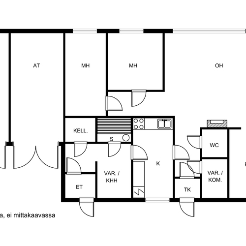 Keittiön ja saunan vieressä avotila.