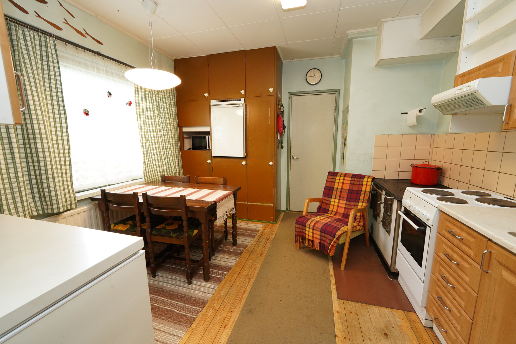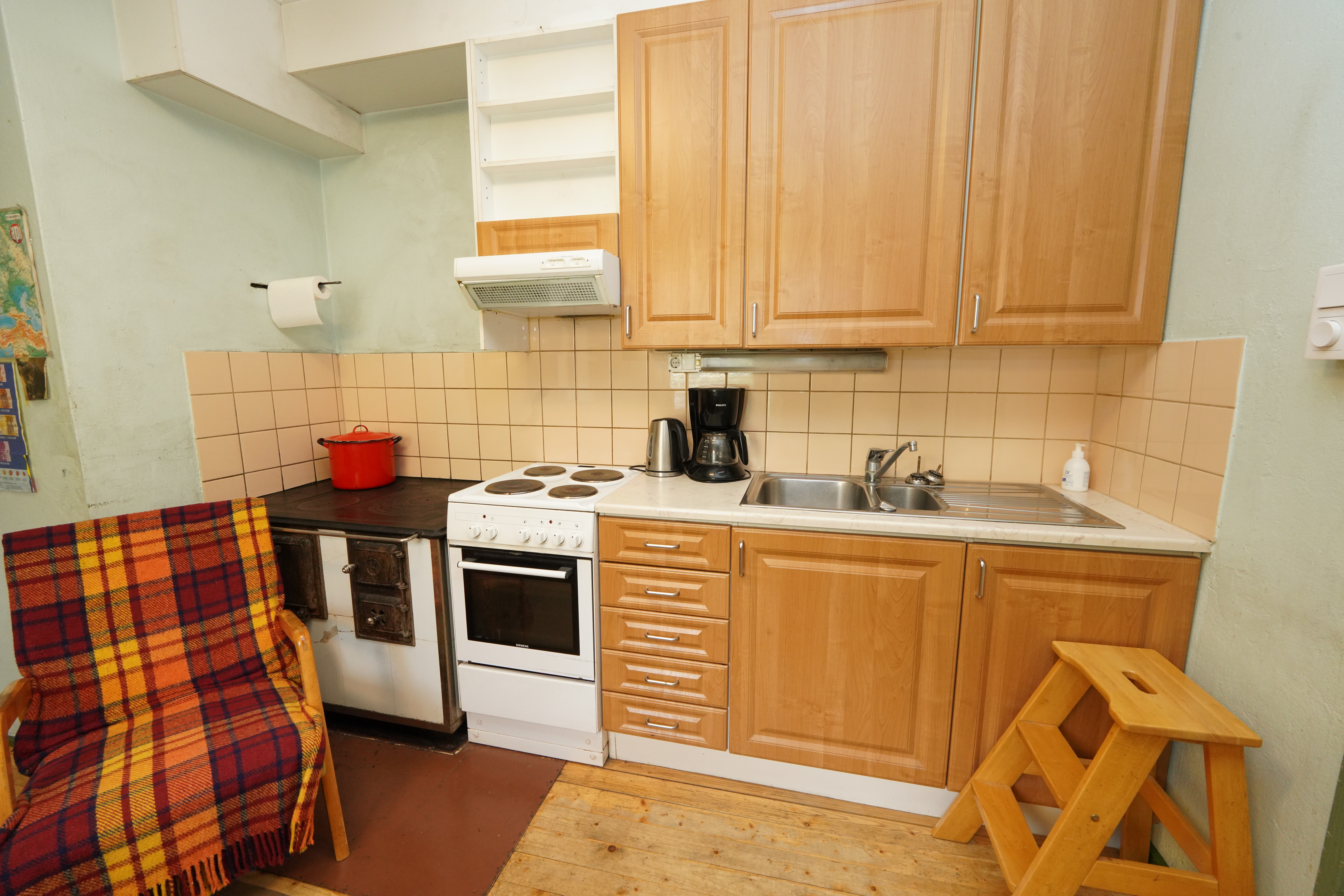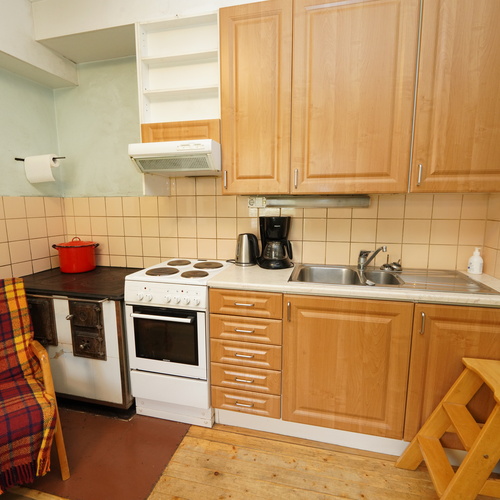 Varusteet: jääkaappi, sähköliesi, puuhella