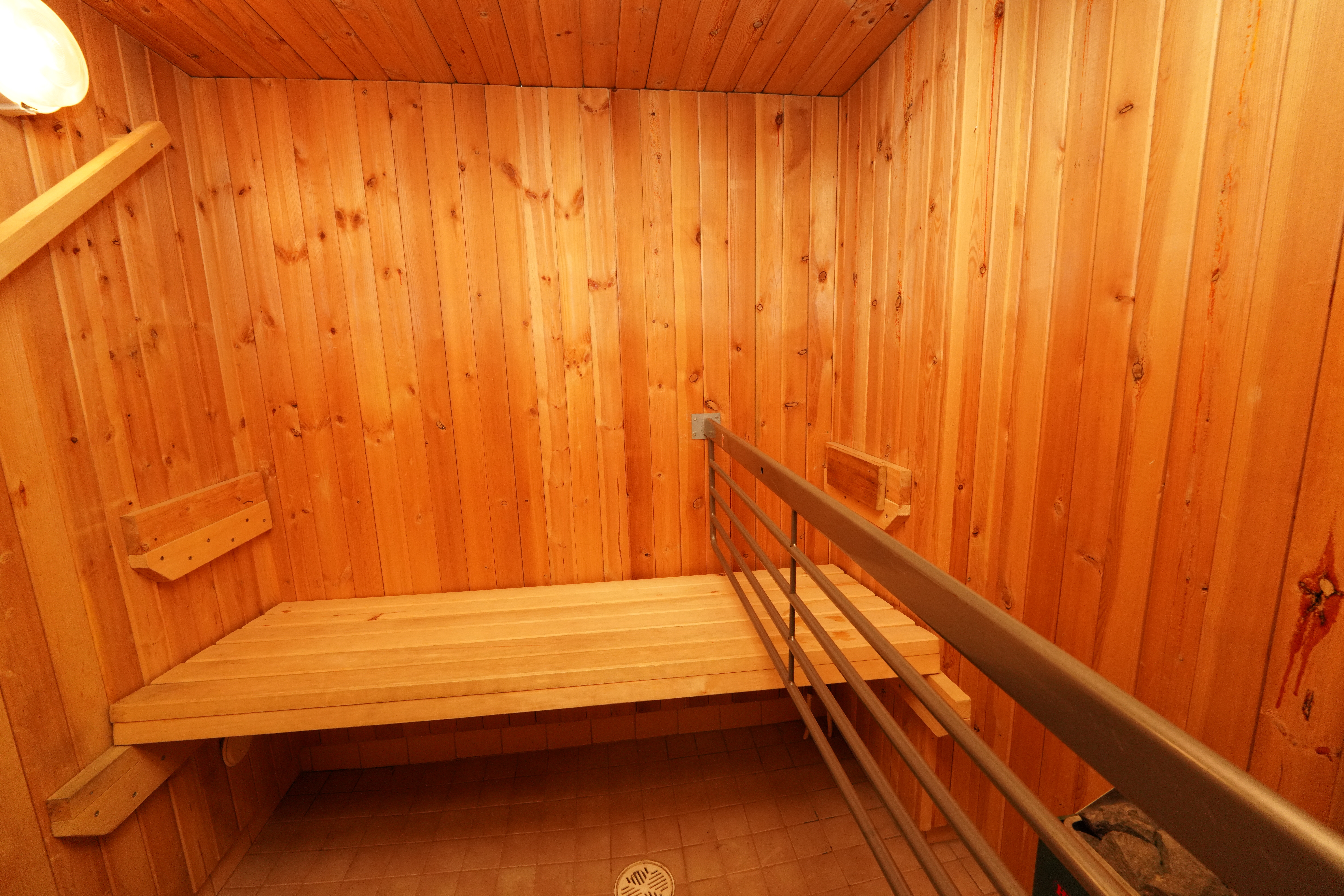 Suihku 1990+-luvulla tehdyssä sisäsaunassa.
