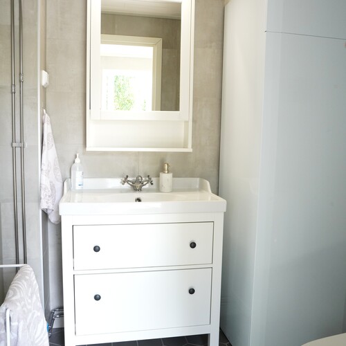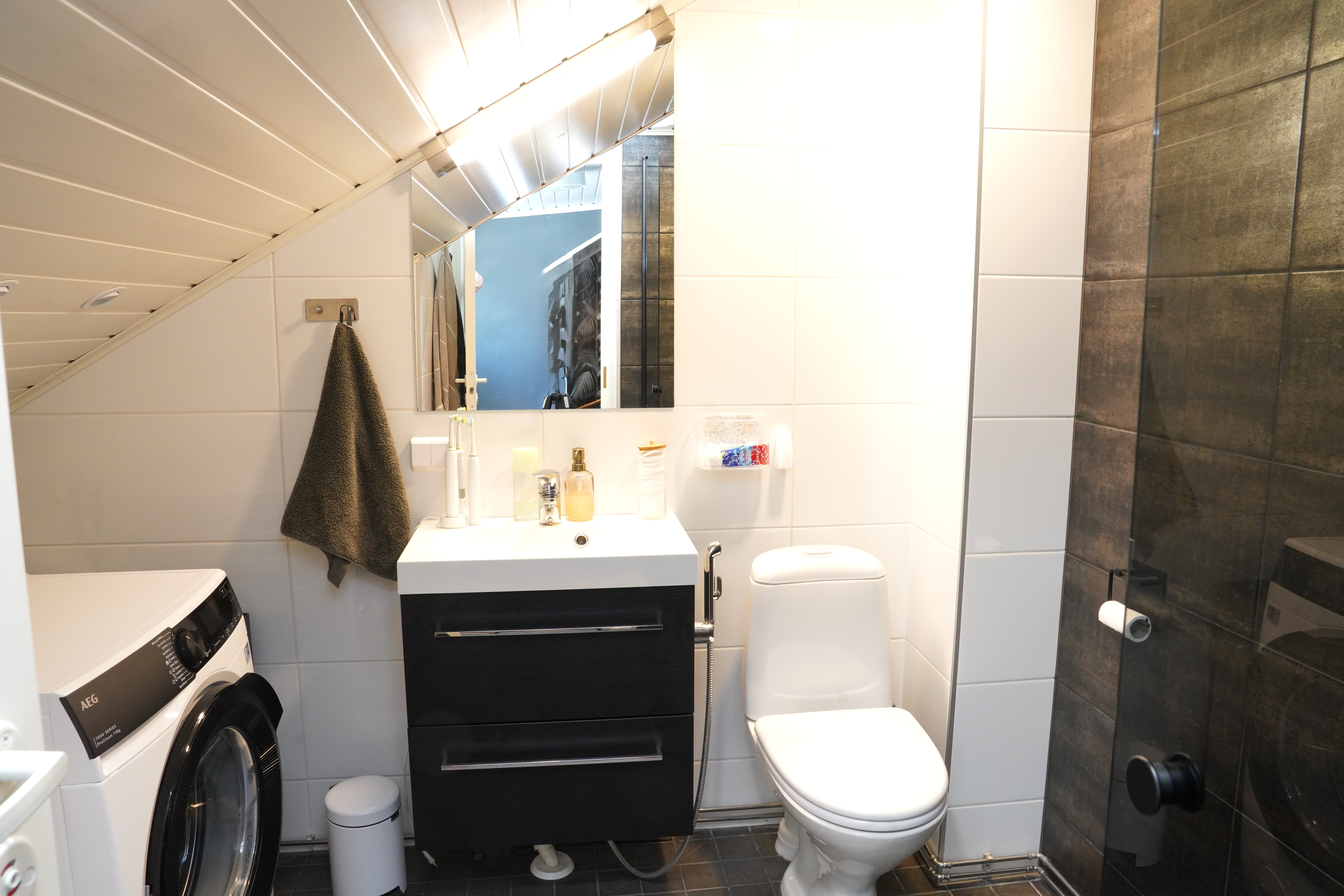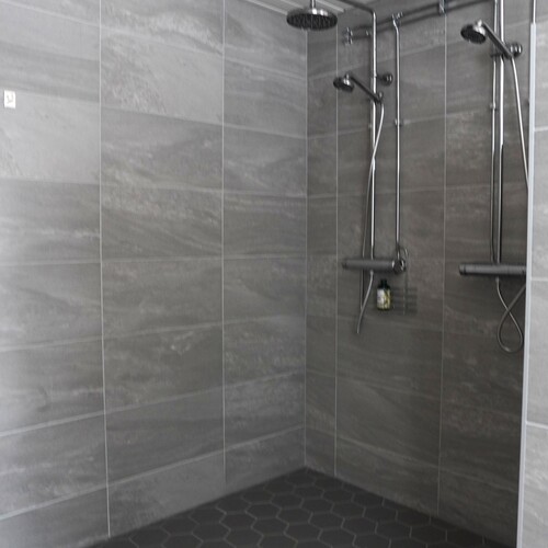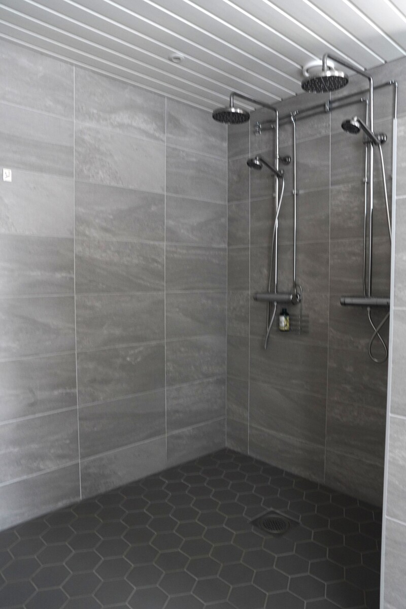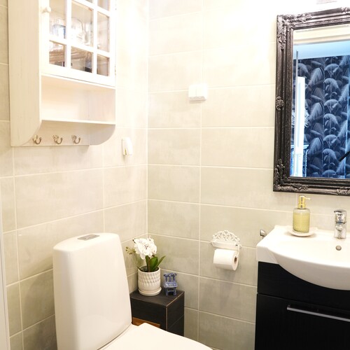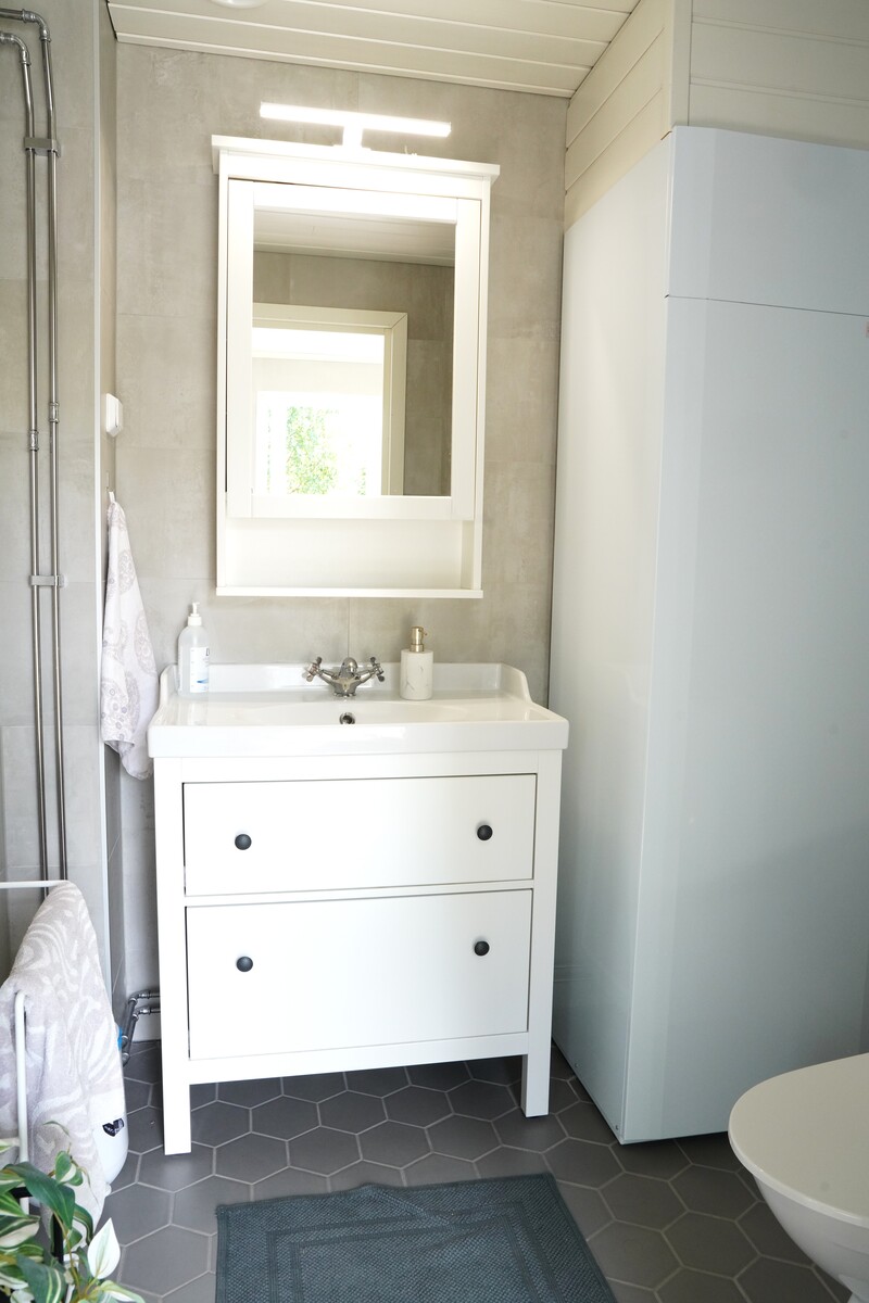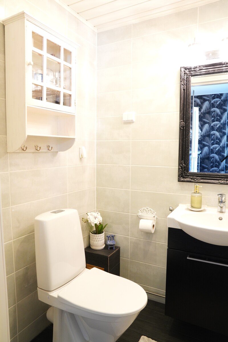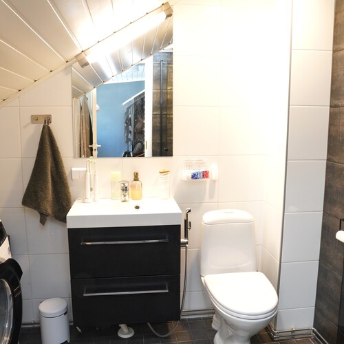 Varusteet: lattiaan asennettu WC, lattialämmitys