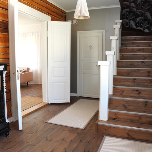 Loviisan ydinkeskustassa, historiallisessa Alakaupungissa ja lähellä merenlahtea laadukkaasti saneerattu 1800-luvun loppupuolen hirsitalo. Tämän kauniin kodin materiaalivalinnoissa näkyvät laatu ja samalla vanhan, elämää nähneen rakennuksen kunnioittaminen. Alakerrassa on keittiön lisäksi ruokailuhuone/makuuhuone ja tilava olohuone sekä erillinen wc. Yläkerrassa on kaksi makuuhuonetta ja kylpyhuone. Makuuhuoneista toisen parvekkeelta avautuu kaunis kaupunkinäkymä, merenkin pilkottaessa puiden välistä. Suojaisalla, korkean aidan ympäröimällä tontilla on uudehko terassi sekä talousrakennus, johon on saneerattu saunaosaston lisäksi työ-/vierashuone ja wc. Rakennus jatkuu saneeraamattomana varastotilana ja toisessa päässä on pieni autotalli. Tässä kodissa on mahdollisuuksia moneen, joten tervetuloa tutustumaan ja ihastumaan!
