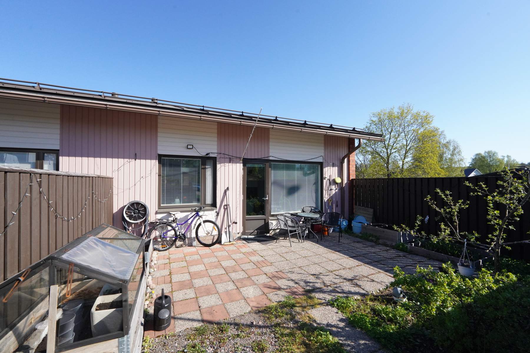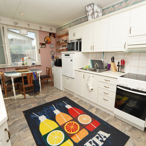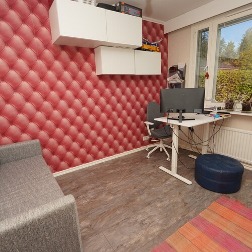Vuosien varrella saneerattu, siistikuntoinen kolmio yhdessä tasossa. Olohuoneesta on käynti aurinkoiselle ja aidatulle etelänpuoleiselle piha-alueelle, josta osa kivettyä terassia. Taloyhtiössä on uusittu mm. ikkunat ja terassiovet sekä käyttövesiputket, huoneistossa sauna ja kylpyhuone on uusittu vuonna 2018. Lähiaikojen suurimpana hankkeena maalämpö ja aurinkopaneelit, joista ei näillä näkymin synny juurikaan lisäkustannuksia osakkeenomistajille. Sijainti on erinomainen rauhallisella ja viihtyisällä pientaloalueella, lähellä ydinkeskustaa ja samalla luontoa ulkoilumahdollisuuksineen. Rauhalassa on lähikauppa ja päiväkoti, lähellä myös uudehko leikkipuisto. Harrastusmahdollisuuksia tuovat esimerkiksi keinonurmikenttä sekä keila- ja jäähallit.