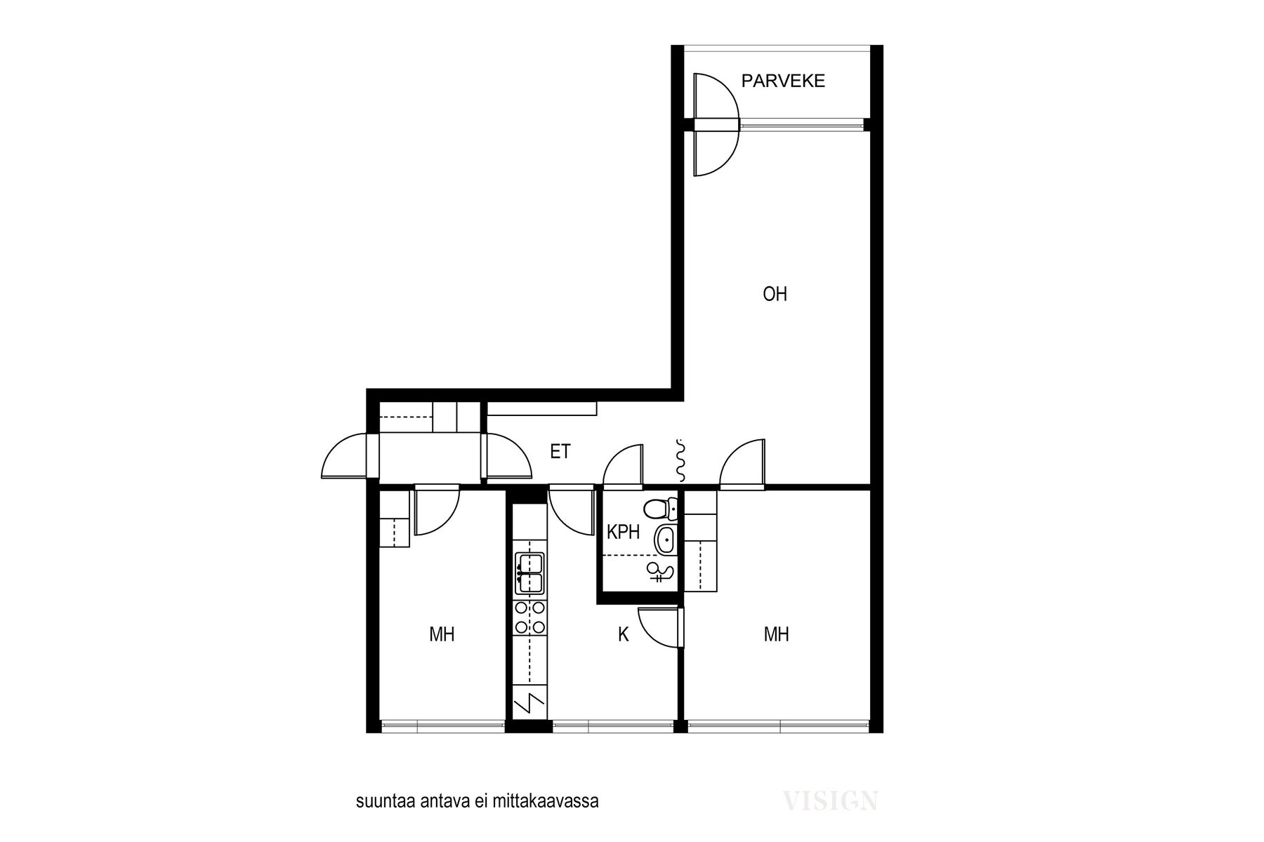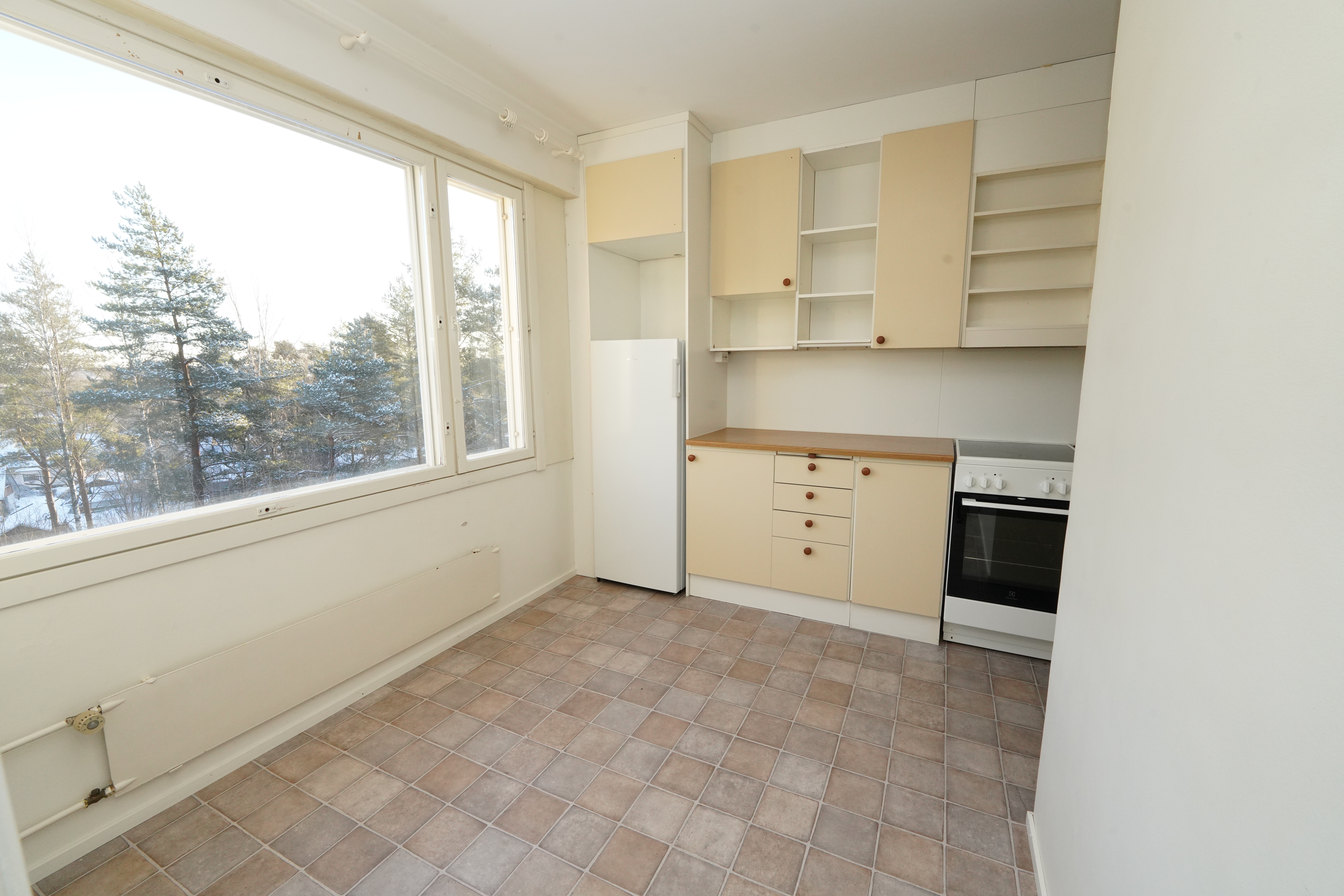 Varusteet: jääkaappi, astianpesukone, keraaminen liesi