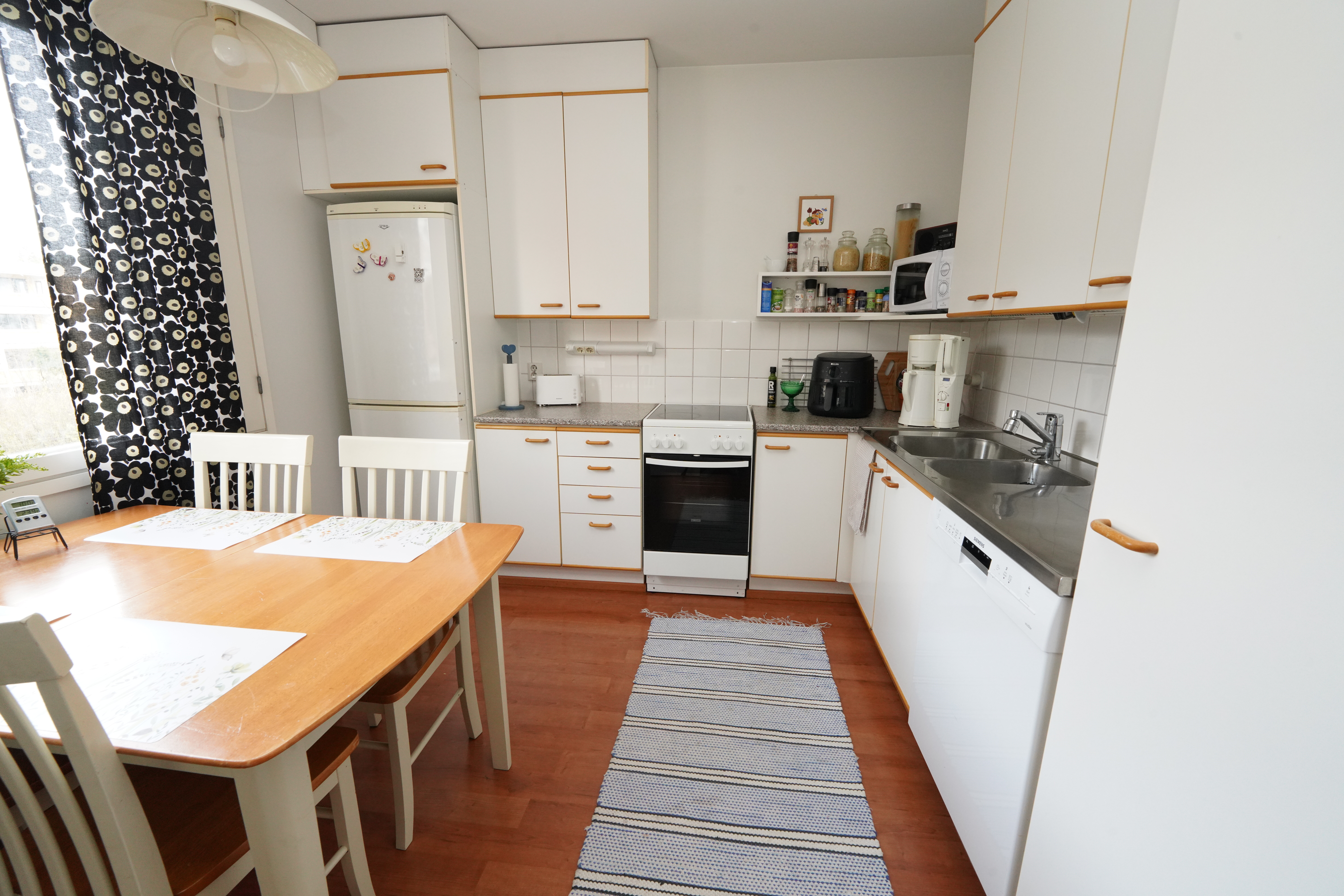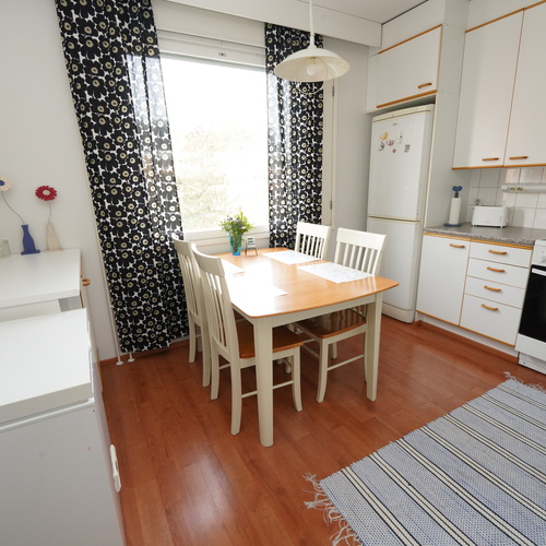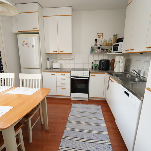 Varusteet: jääviileäkaappi, keraaminen liesi, astianpesukone