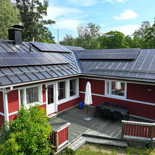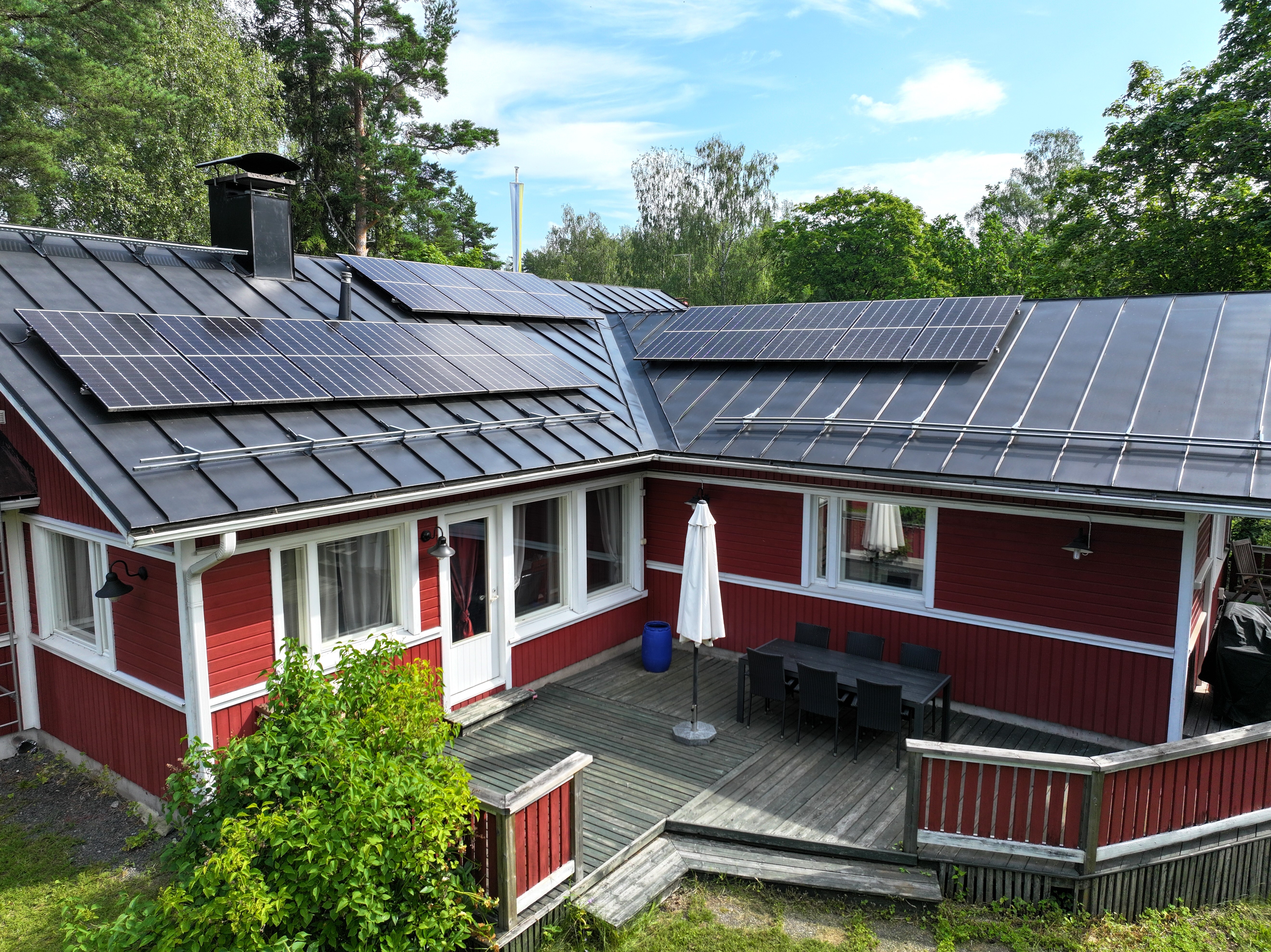 Eteläpäädyn katto maalattu ja asennettu 15 kappaletta (6,7 kW) aurinkopaneeleja vuonna 2022