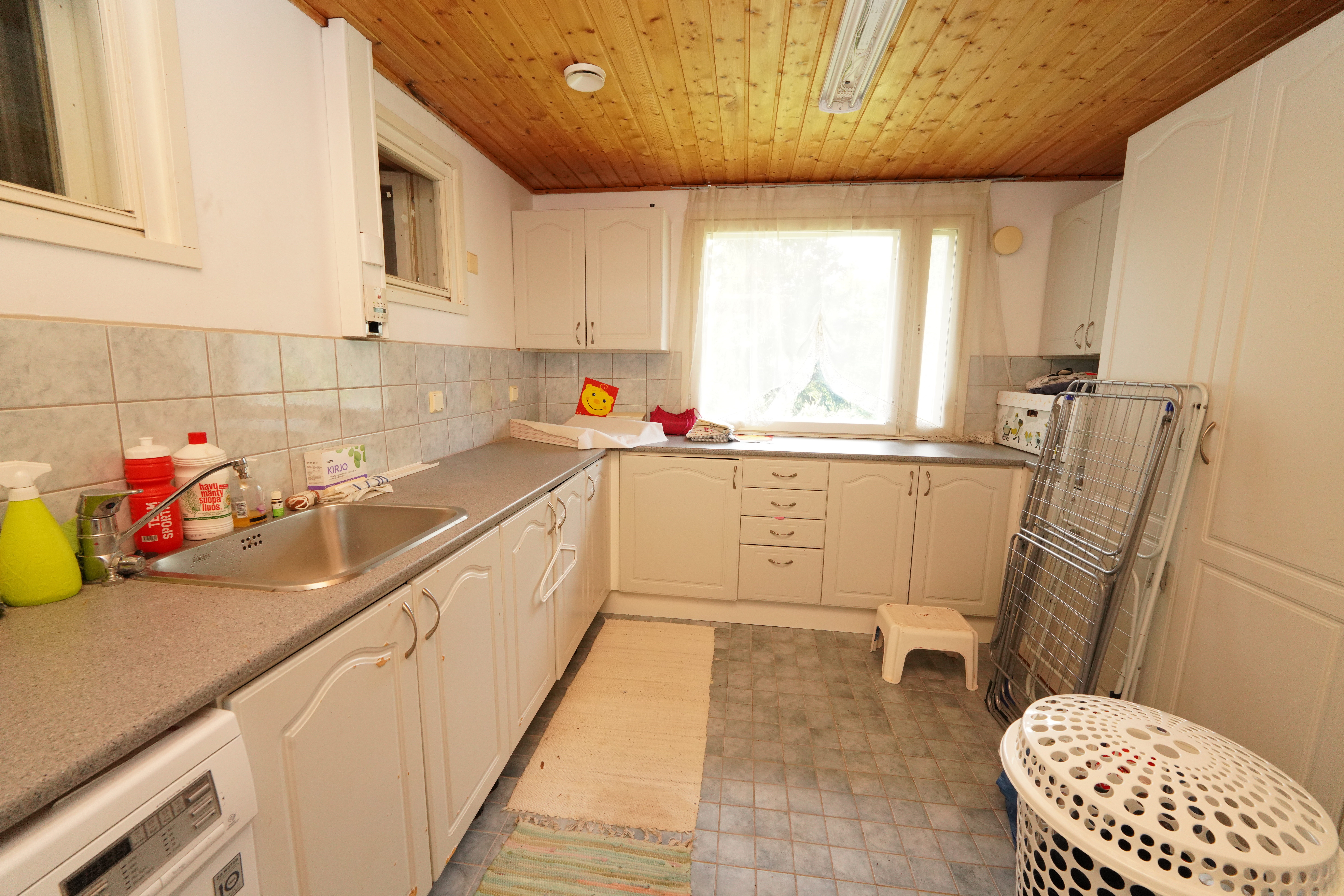Varusteet: pesukoneliitäntä, pesuallas, pöytätaso