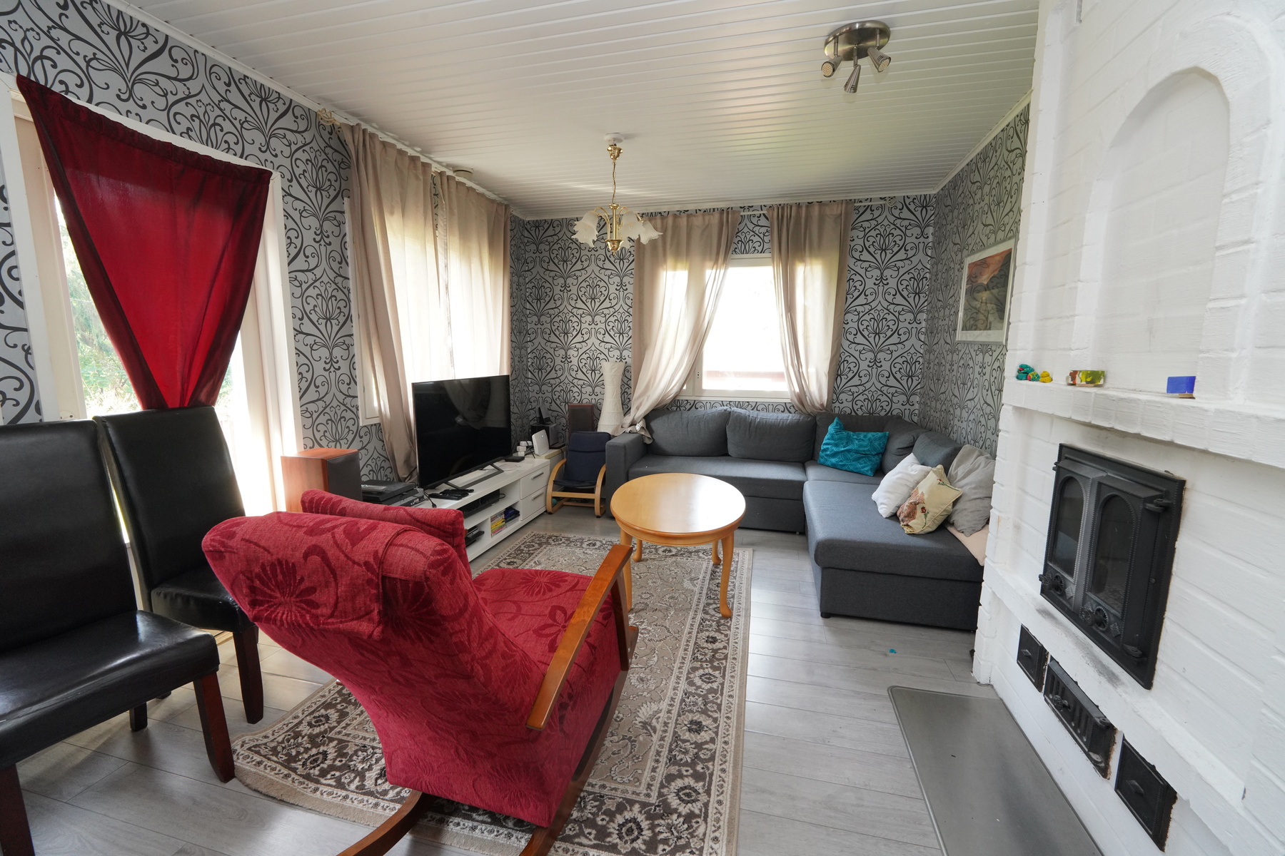 Seinien pintamateriaali: maalattu, tapetti