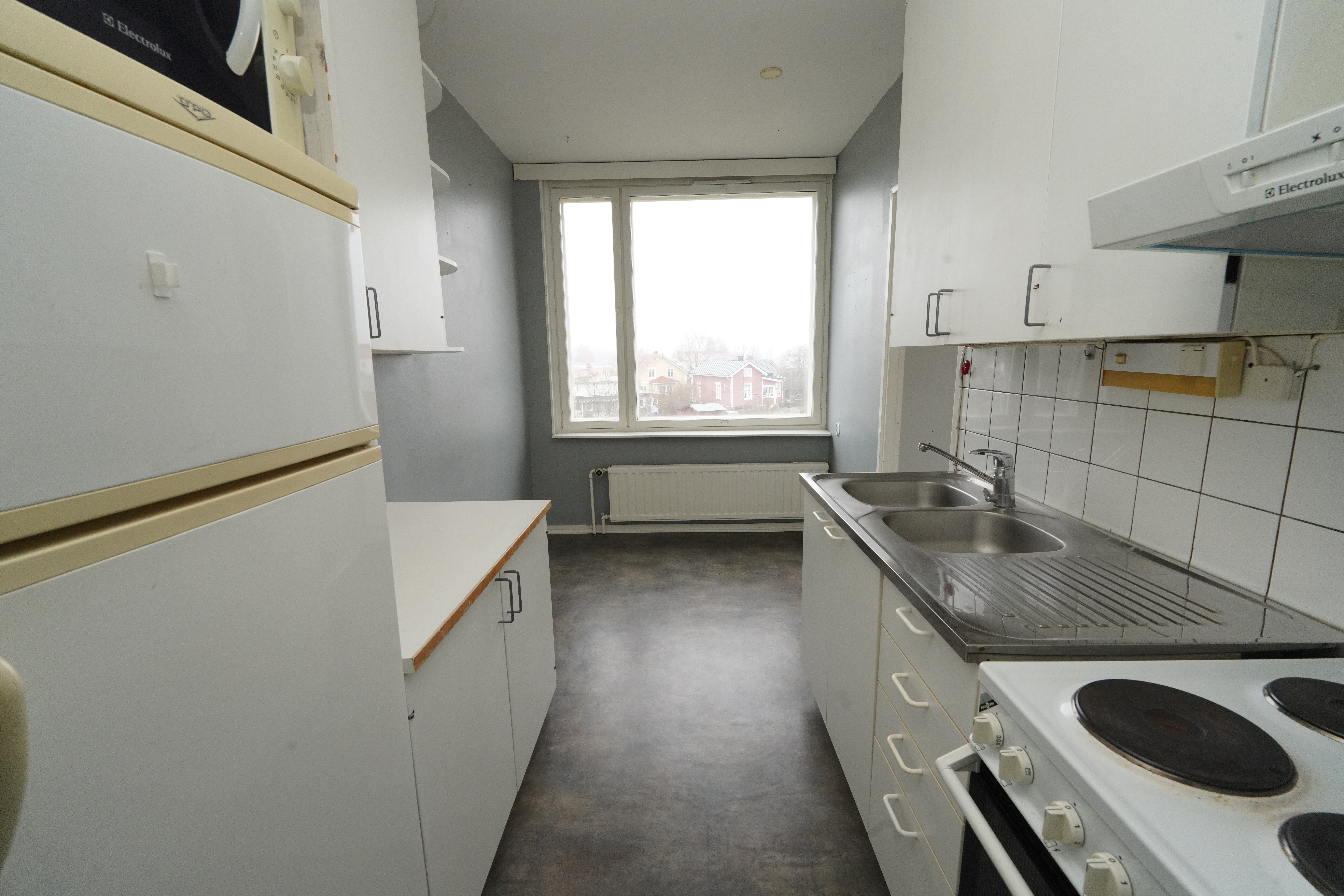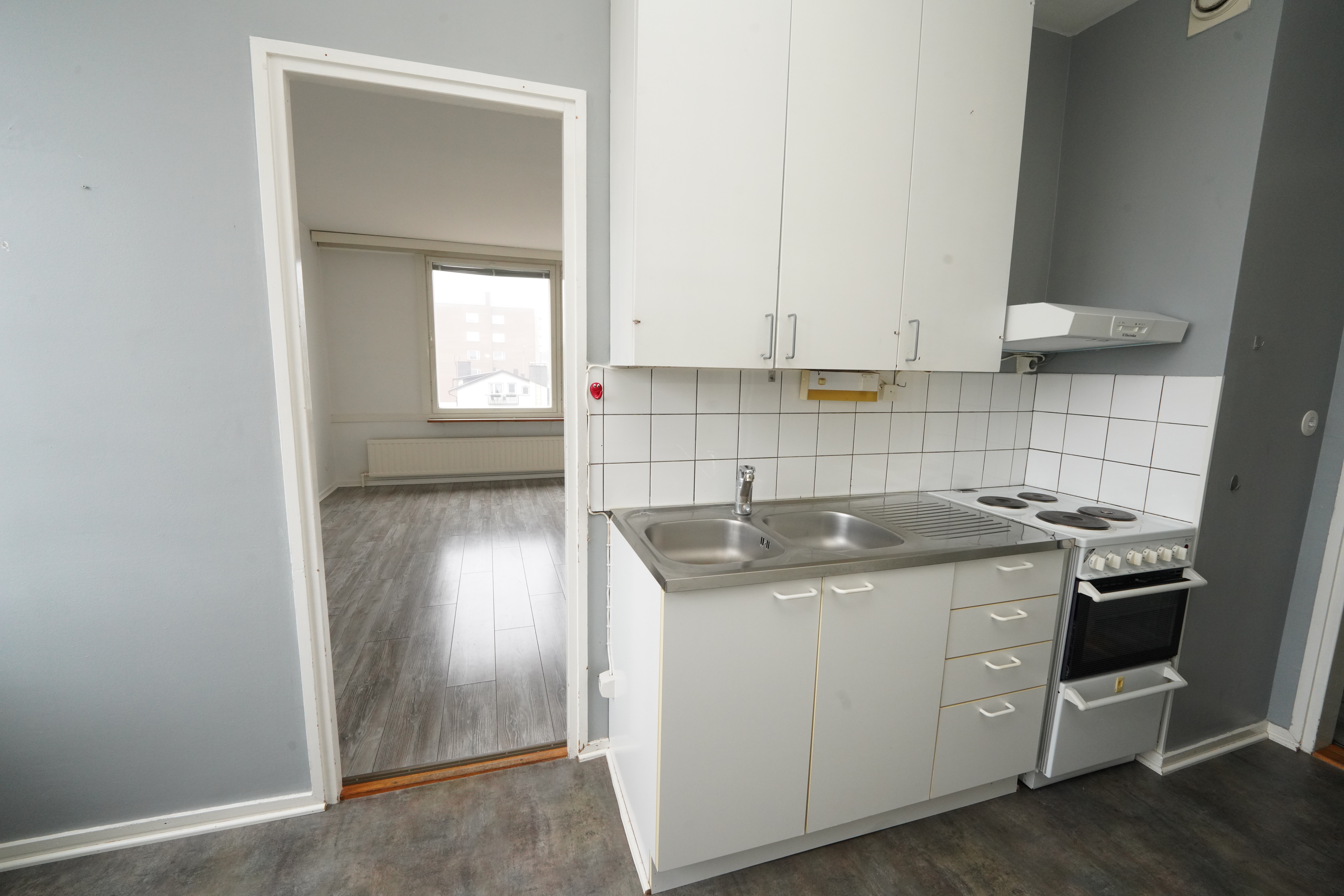 Vanhan pientalo- ja viheralueen kupeessa ja samalla kaupungin ydinkeskustassa ylimmän asuinkerroksen kaksio. Päätyasuntona ikkunoita kahteen suuntaan, mikä tuo tiloihin reippaasti valoa ja avaruutta. Kaikki palvelut löytyvät lyhyen kävelymatkan päästä, ikkunoista ja parvekkeelta avautuvat avarat ja kauniit vihernäkymät. Vaikka asunto kaipaa keittiön ja kylpyhuoneen osalta päivitystä, niin taloyhtiössä mm. viemäri- ja vesiputket on jo uusittu ja vesikatto jokunen vuosi sitten pinnoitettu. Etätöitä ajatellen lisäksi valmiina nopea nettiyhteys ja sijoittajallekin keskusta-asuntona oiva vaihtoehto.