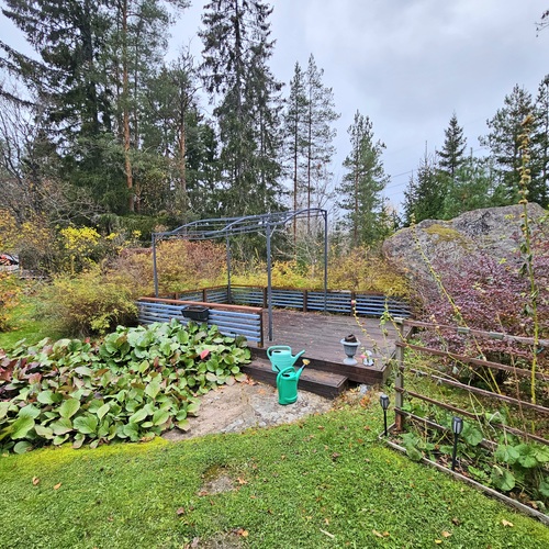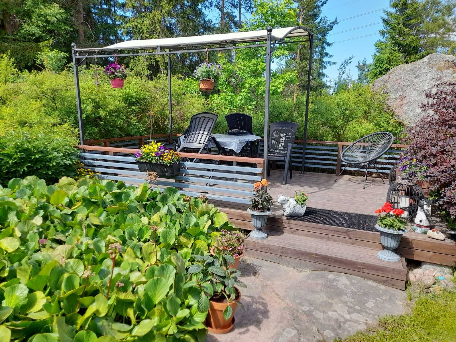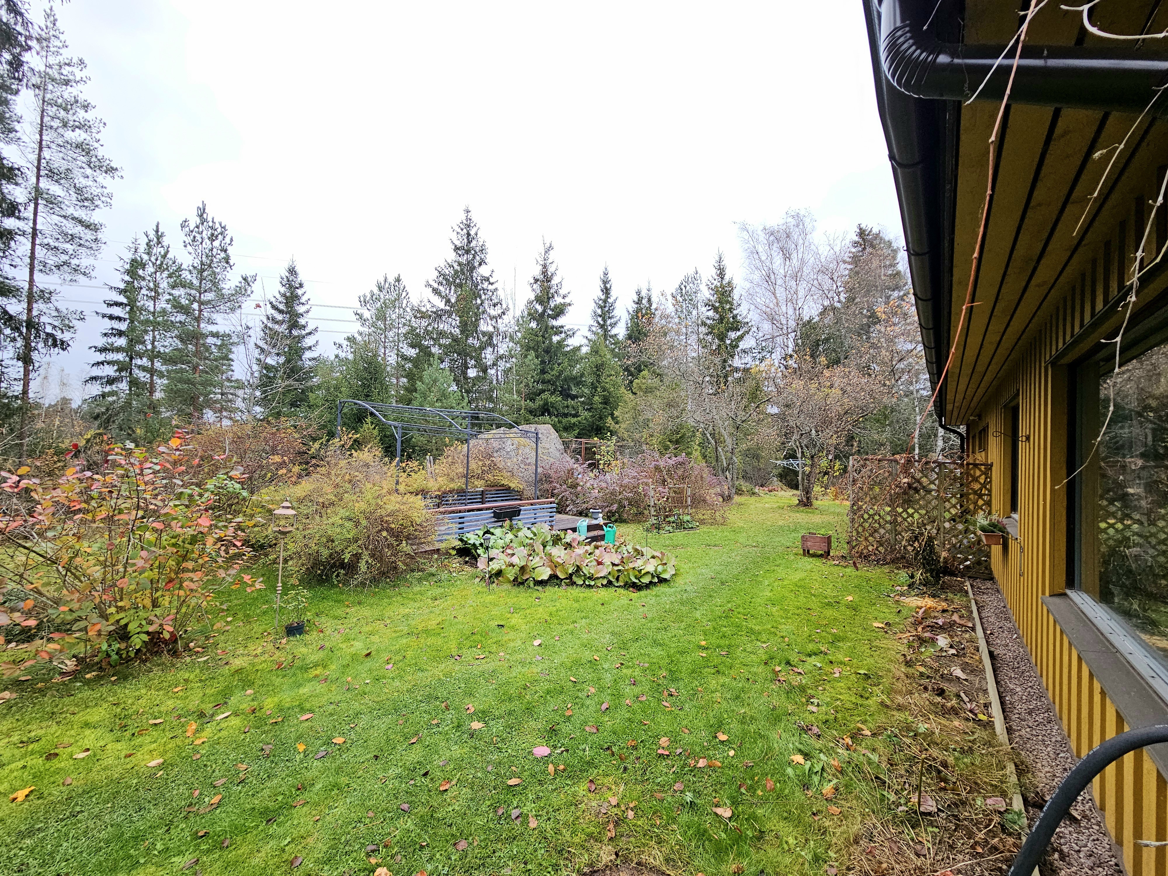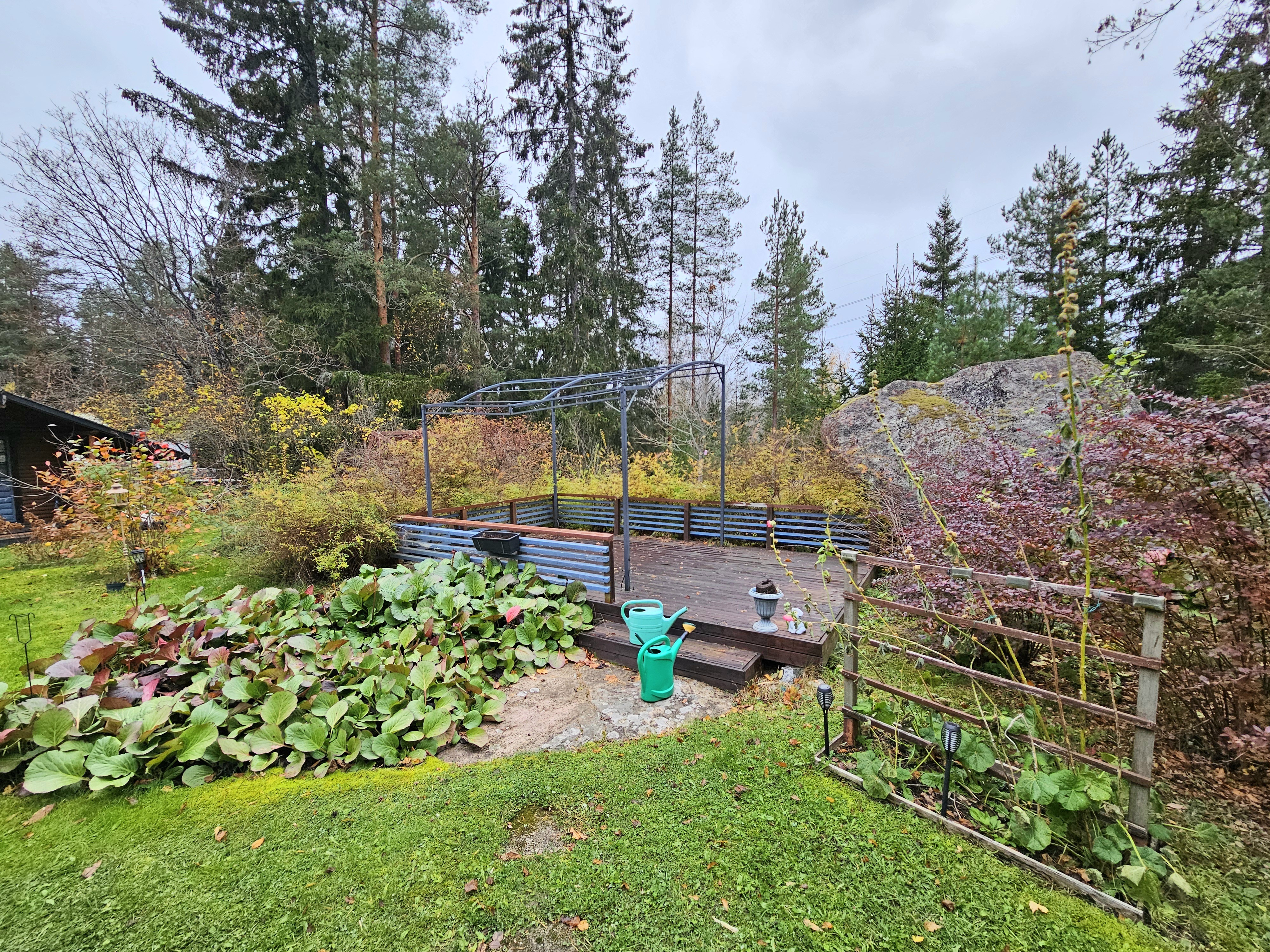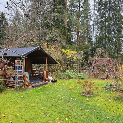 Oma 1128 neliön tontti antaa perheelle tilaa puuhasteluun ja leikkimiseen. Suojaisalla takapihalla on pieni vierasaitta sekä terassi, pihasta pääsee suoraan marja- ja sienimetsään.