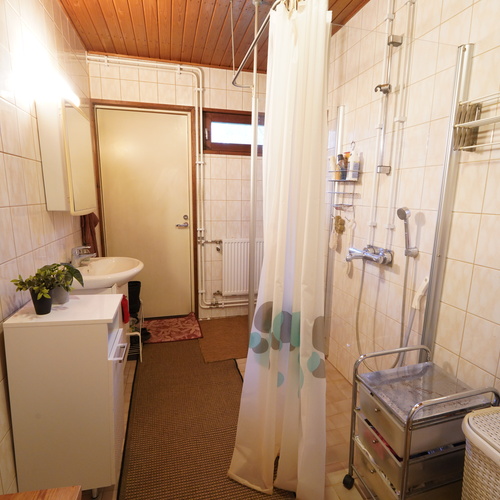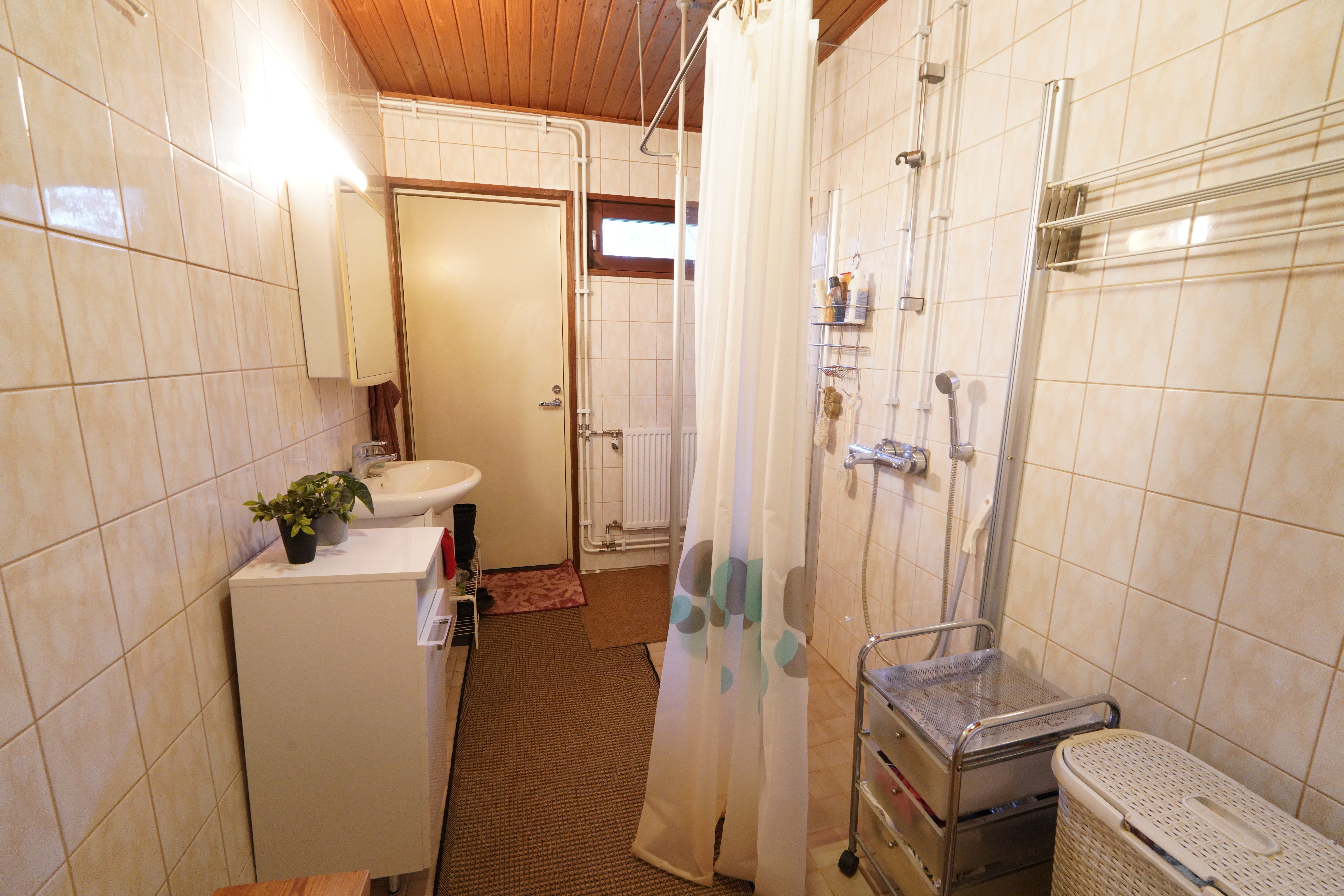 Varusteet: suihku, suihkuseinä, lattialämmitys, pesukoneliitäntä, allaskaappi, peilikaappi