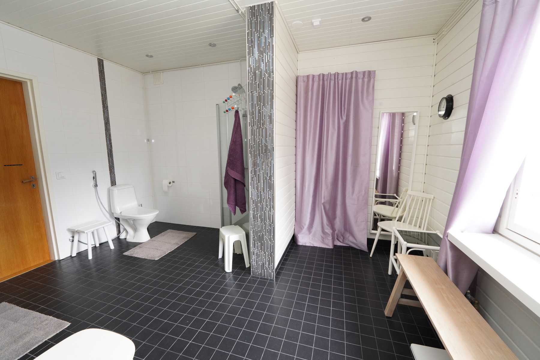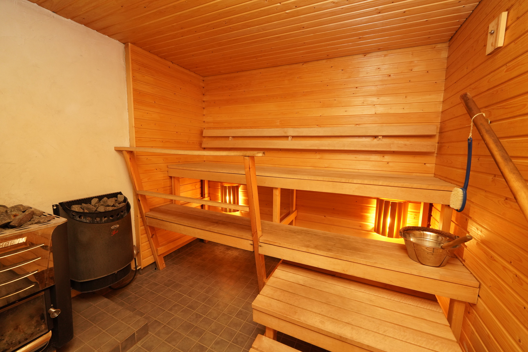 Varusteet: puukiuas, sähkökiuas, lattialämmitys