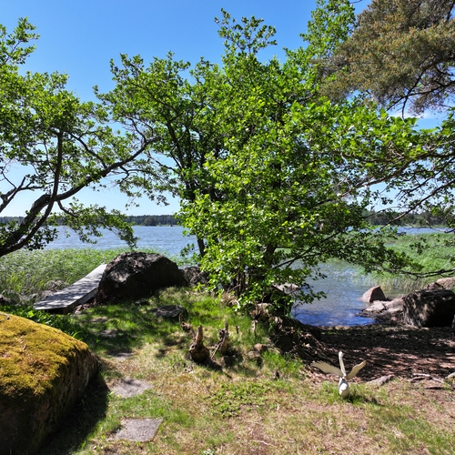 Pääosin kivikkoinen, mutta kaistale laiturin vieressä hyvää uimarantaa.