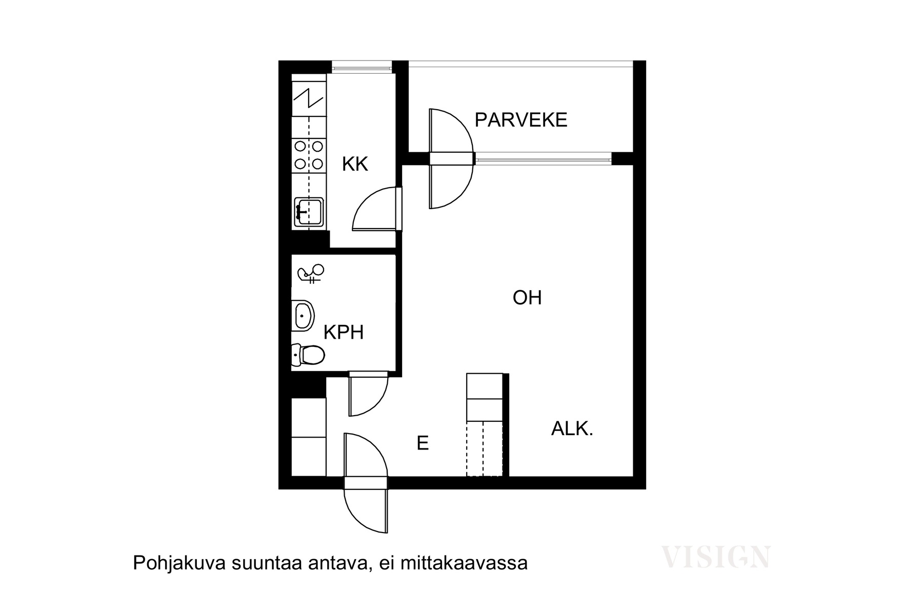 Varusteet: induktioliesi, liesituuletin, erillisuuni