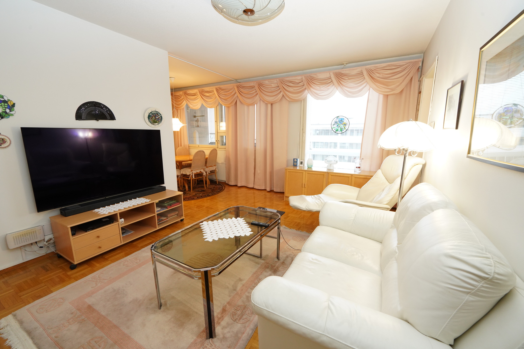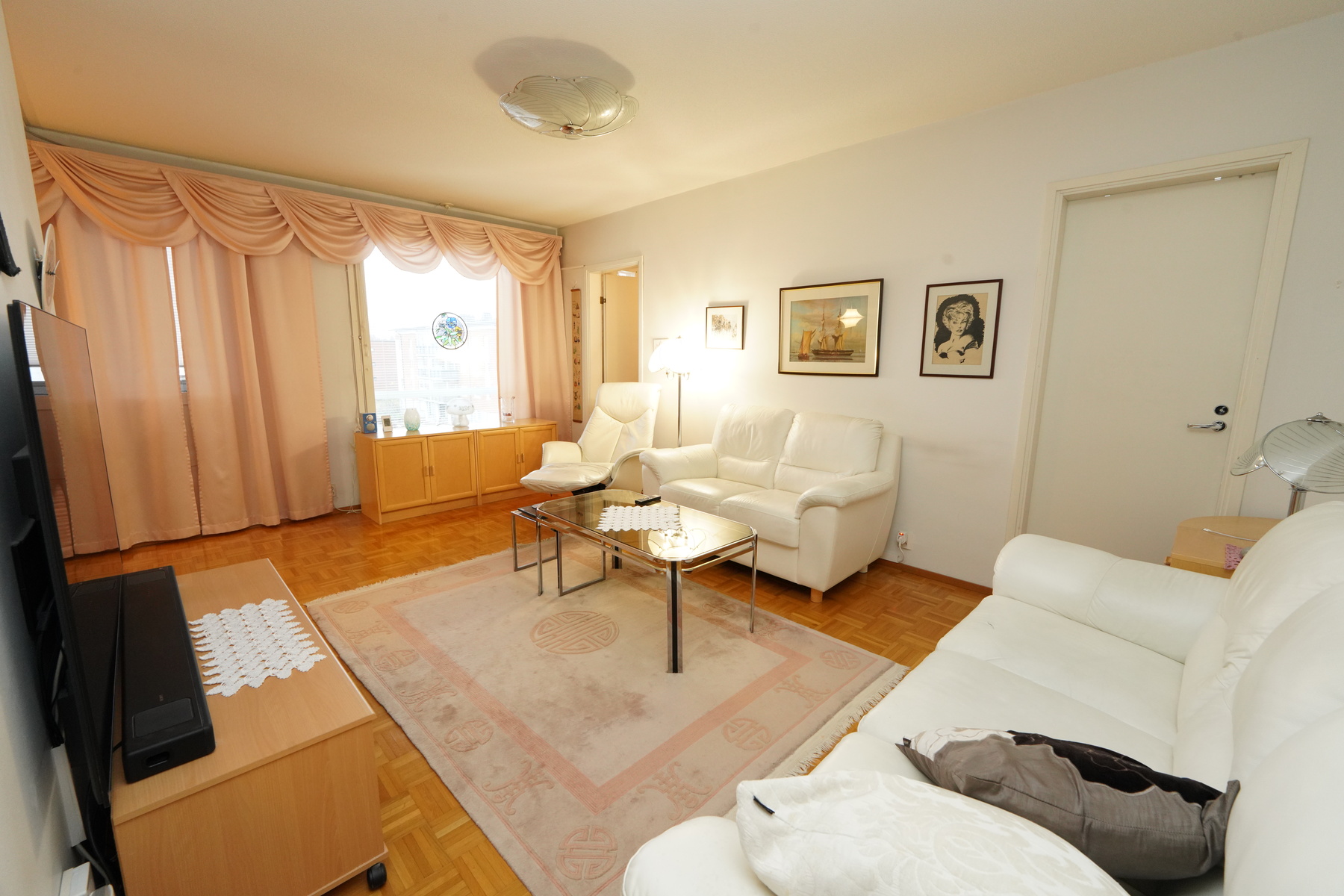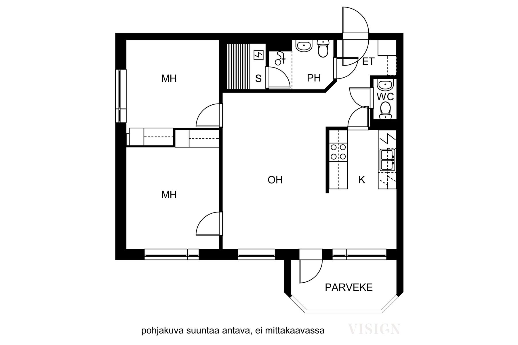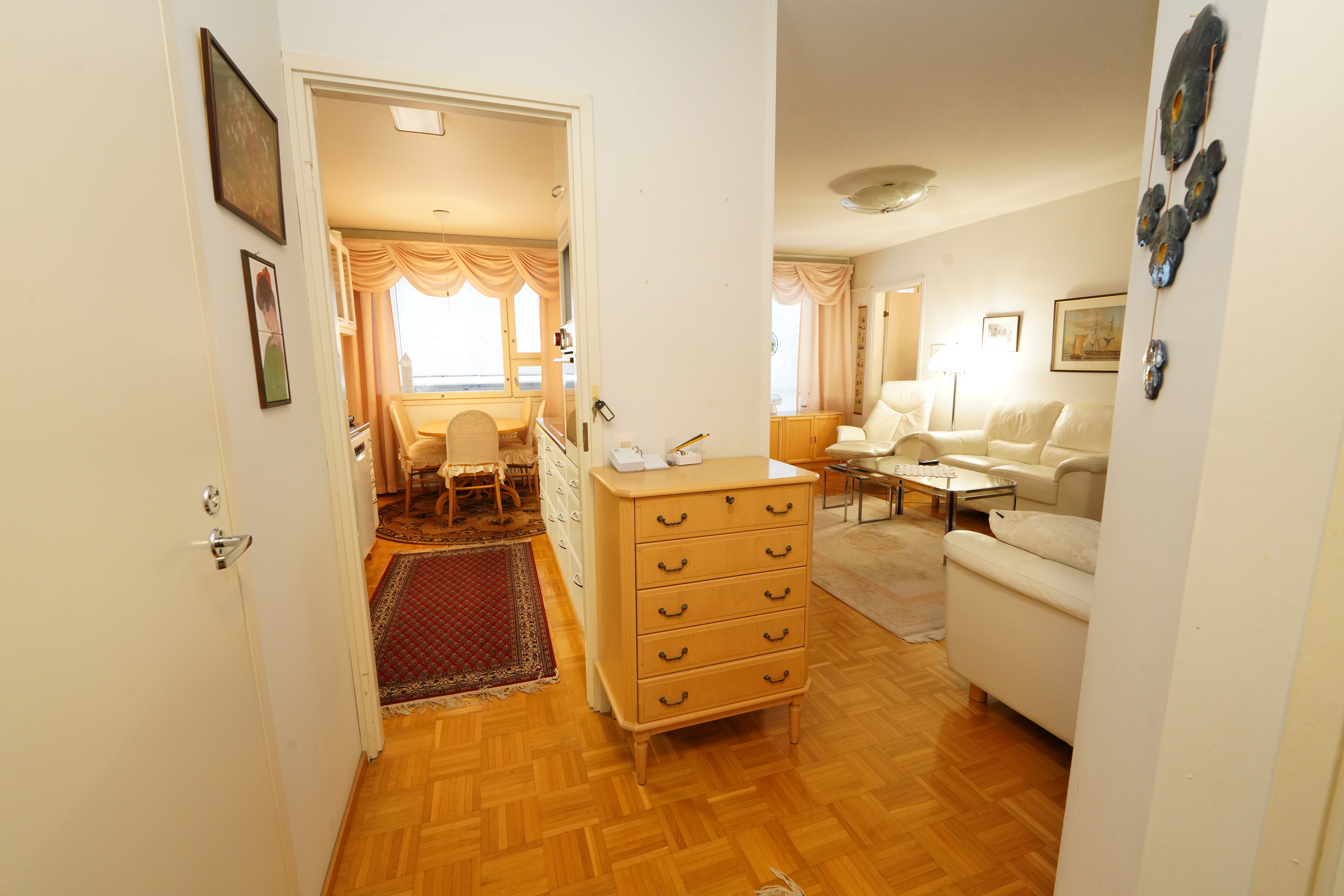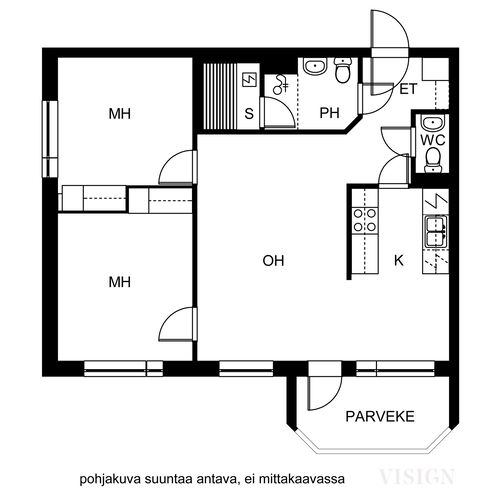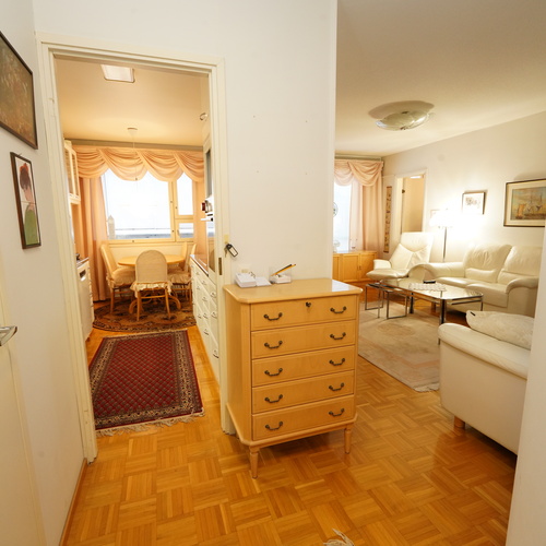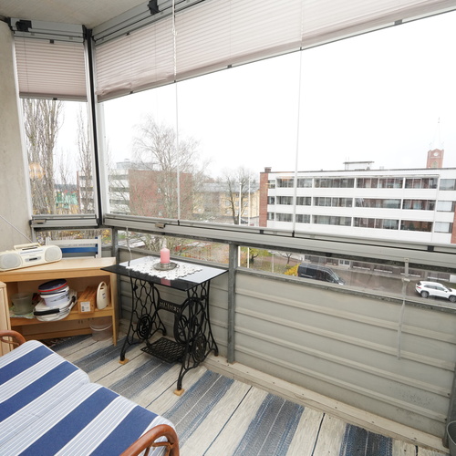 Käytännöllinen pohjaratkaisu välttää hukkaneliöt kahden makuuhuoneen huoneistossa. Olohuoneesta on käynti lasitetulle parvekkeelle, joka tarjoaa suojaa säältä ympäri vuoden. Oma sauna ja erillinen wc ovat myös seikkoja, jotka osaltaan lisäävät asumisviihtyvyyttä.
