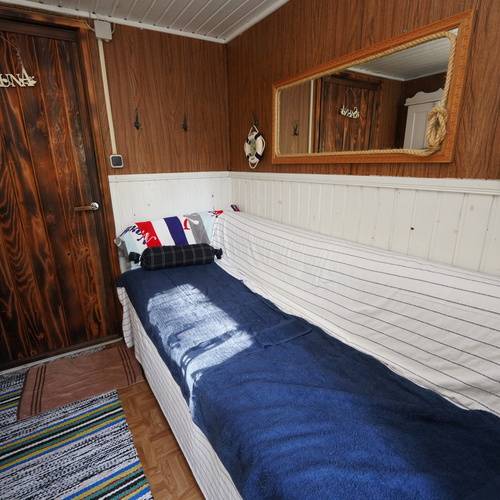 N. 100 m. kävelymatkan päässä mökiltä, oma laituri merenrannassa.