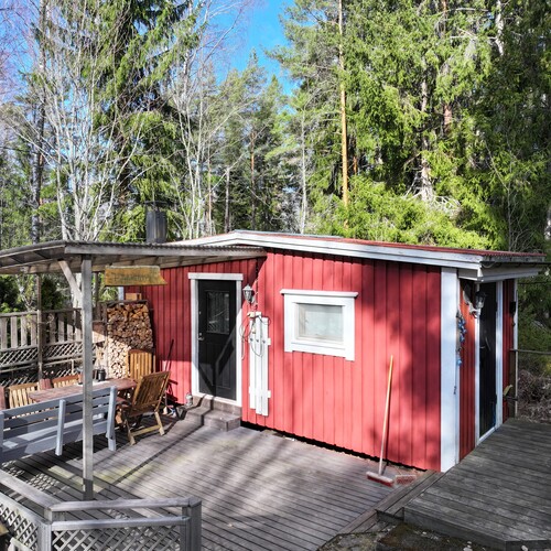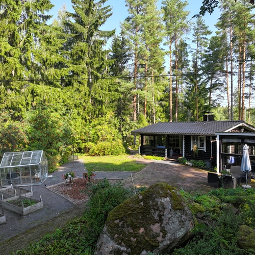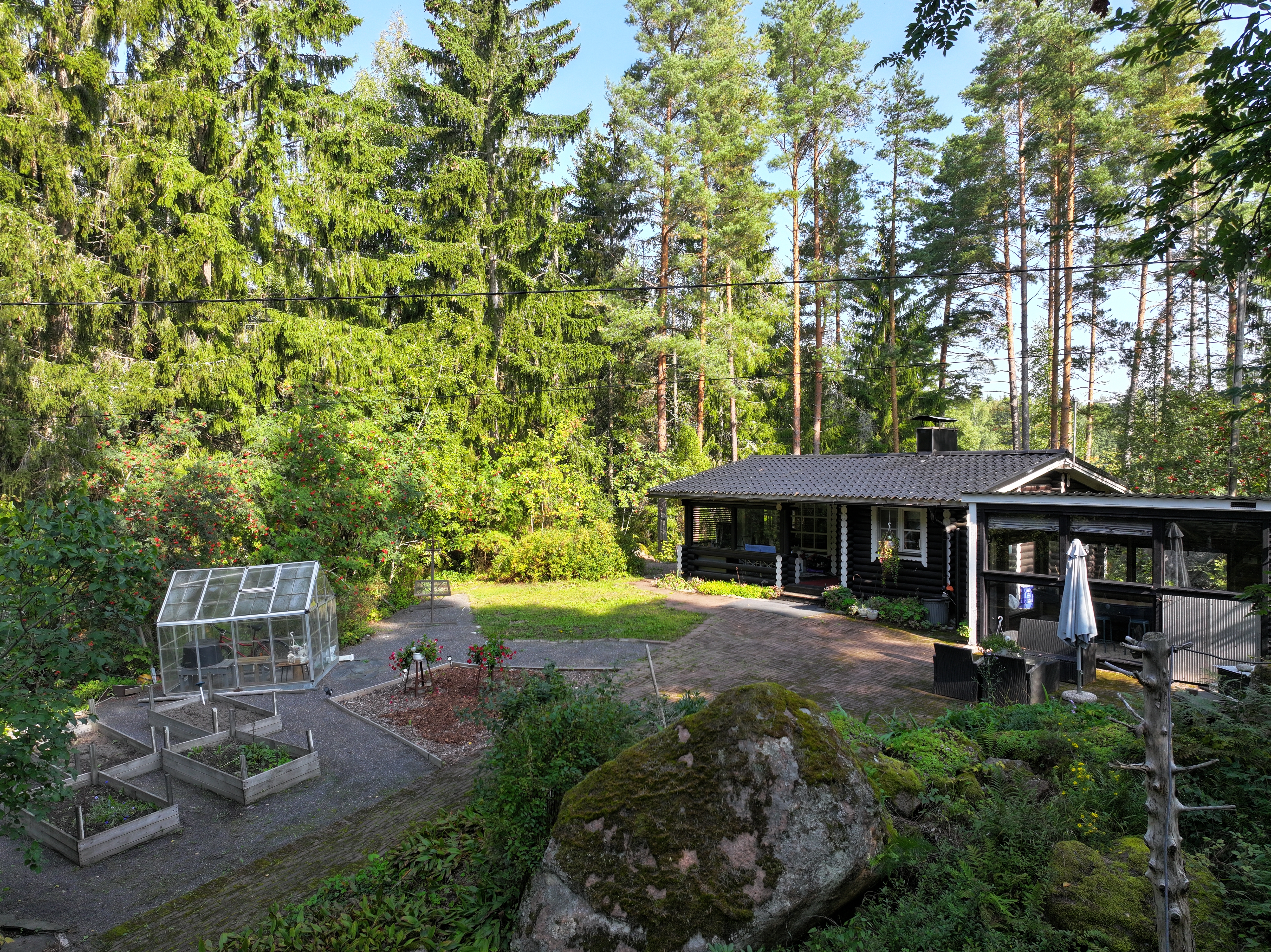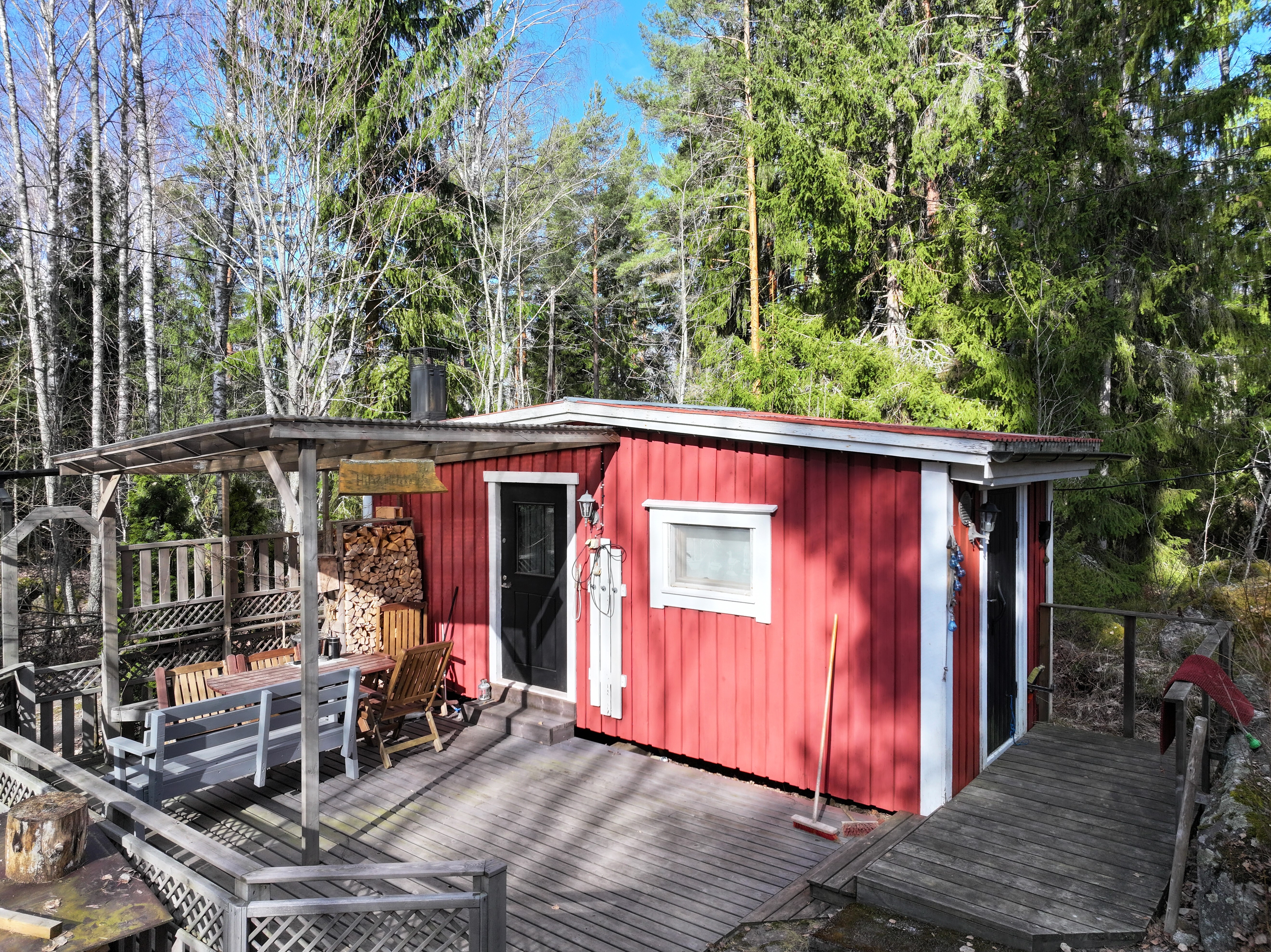 Idyllinen mökkikiinteistö puolen hehtaarin suuruisella suojaisella tontilla. Päämökissä on tilava tupa, keittiö, reilusti makuutiloja ja parikin kuistia. Mökin vieressä on terassin yhteydessä sadekeleilläkin kätevä kesäkeittiö, pihapiirissä puulämmitteinen sauna pukuhuoneineen sekä vaja ja ulkohuussi. Ydinpiha on suurelta osin kivetty ja kaunis istutuksineen. Sähköt ja porakaivo, jonka vettä ei ole käytetty sellaisenaan talousvetenä. Ranta ja oma laituri reilun sadan metrin päässä viereisessä merenrannassa, josta pääsee vaikkapa kalastelemaan alueen kalarikkaille vesille – luvan kanssa tietenkin. Tässä vapaan-ajankiinteistössä saat nauttia luonnonrauhasta ympäri vuoden. Kaikki tämä vain reilun tunnin ajomatkan päässä pääkaupunkiseudulta.