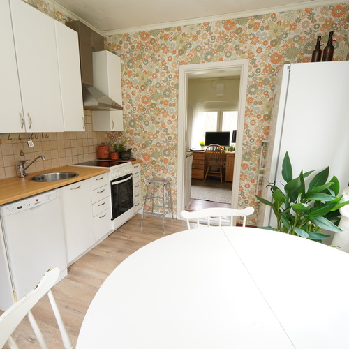 Varusteet: jääkaappipakastin, keraaminen liesi, mikroaaltouuni, astianpesukone