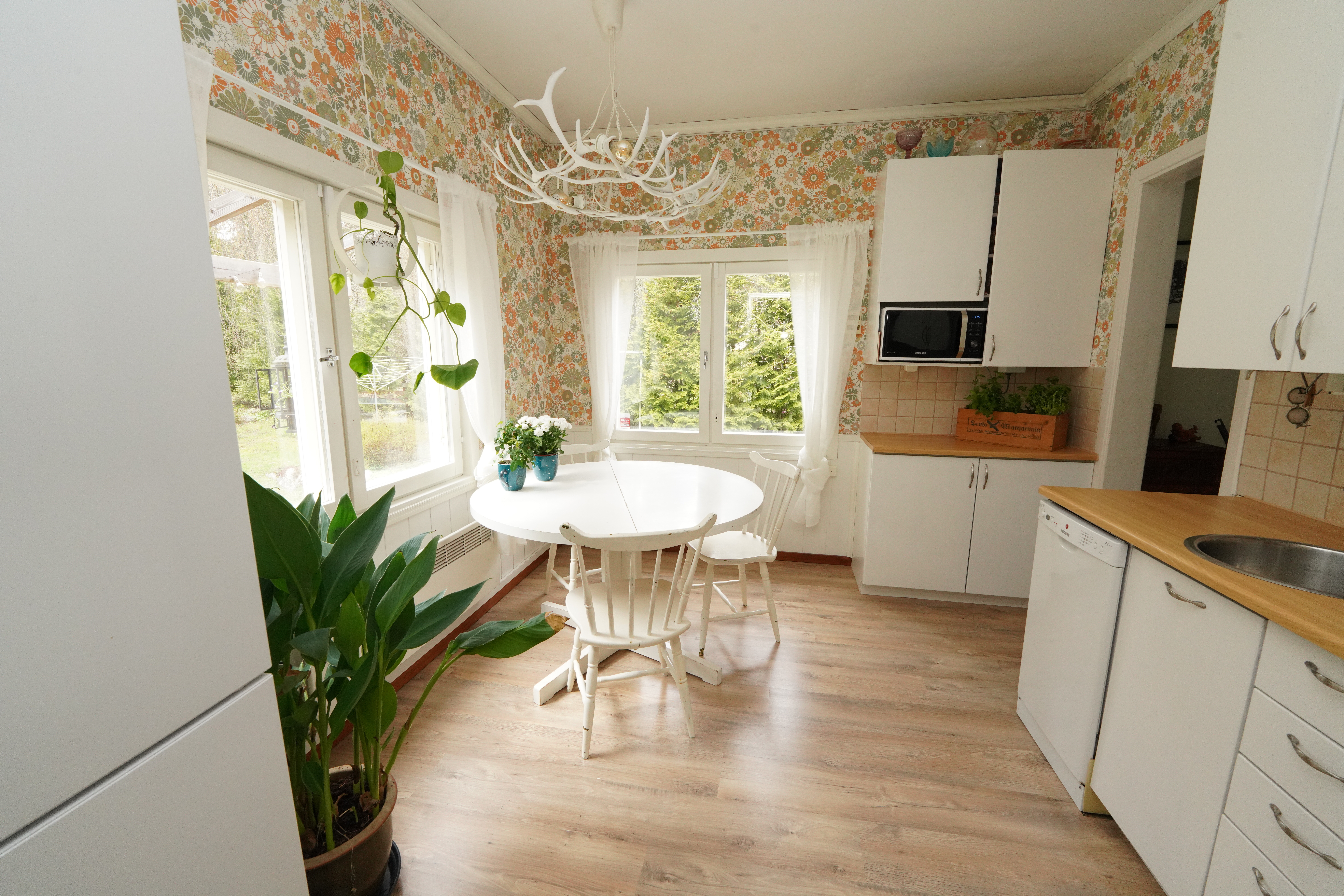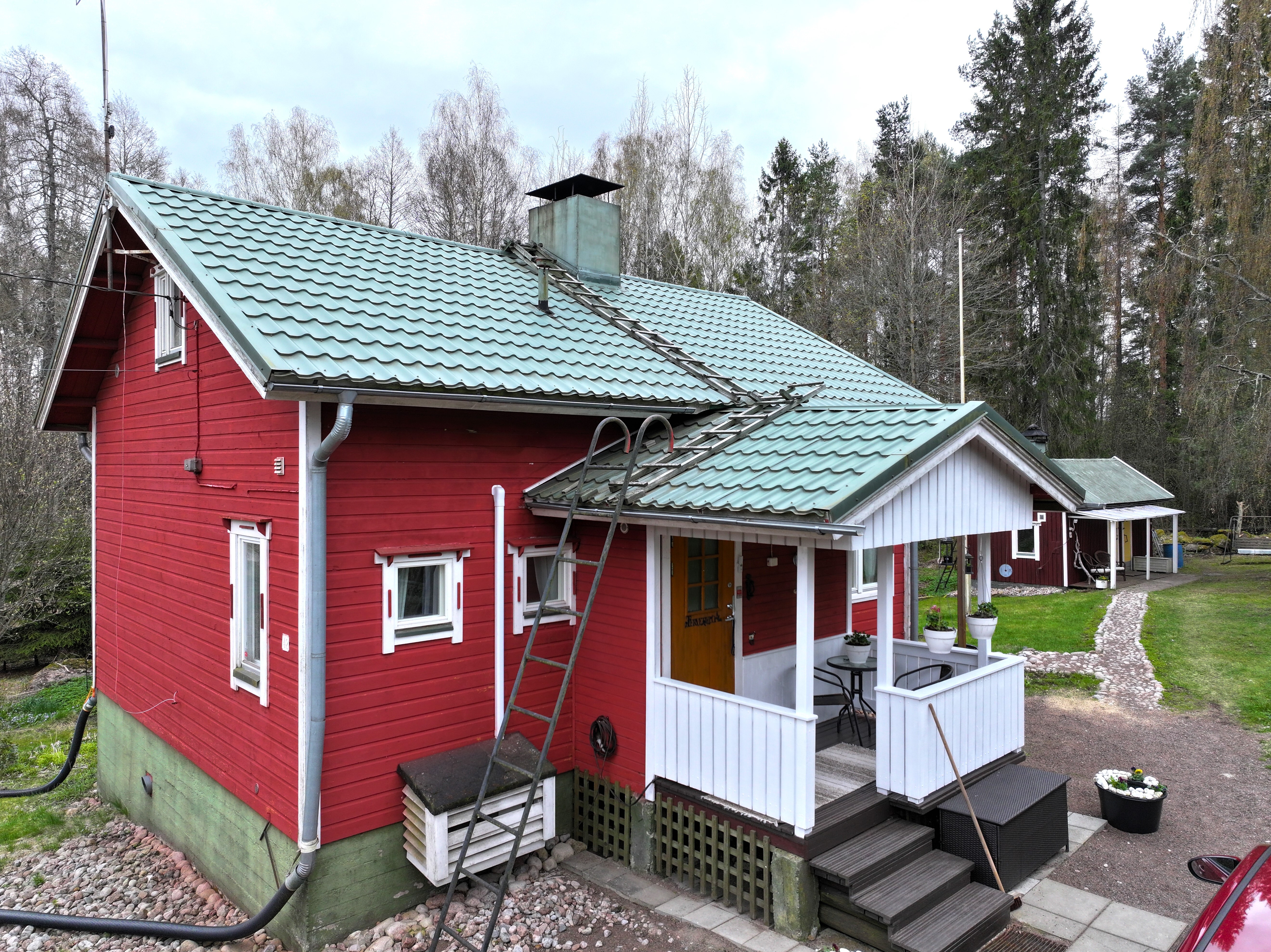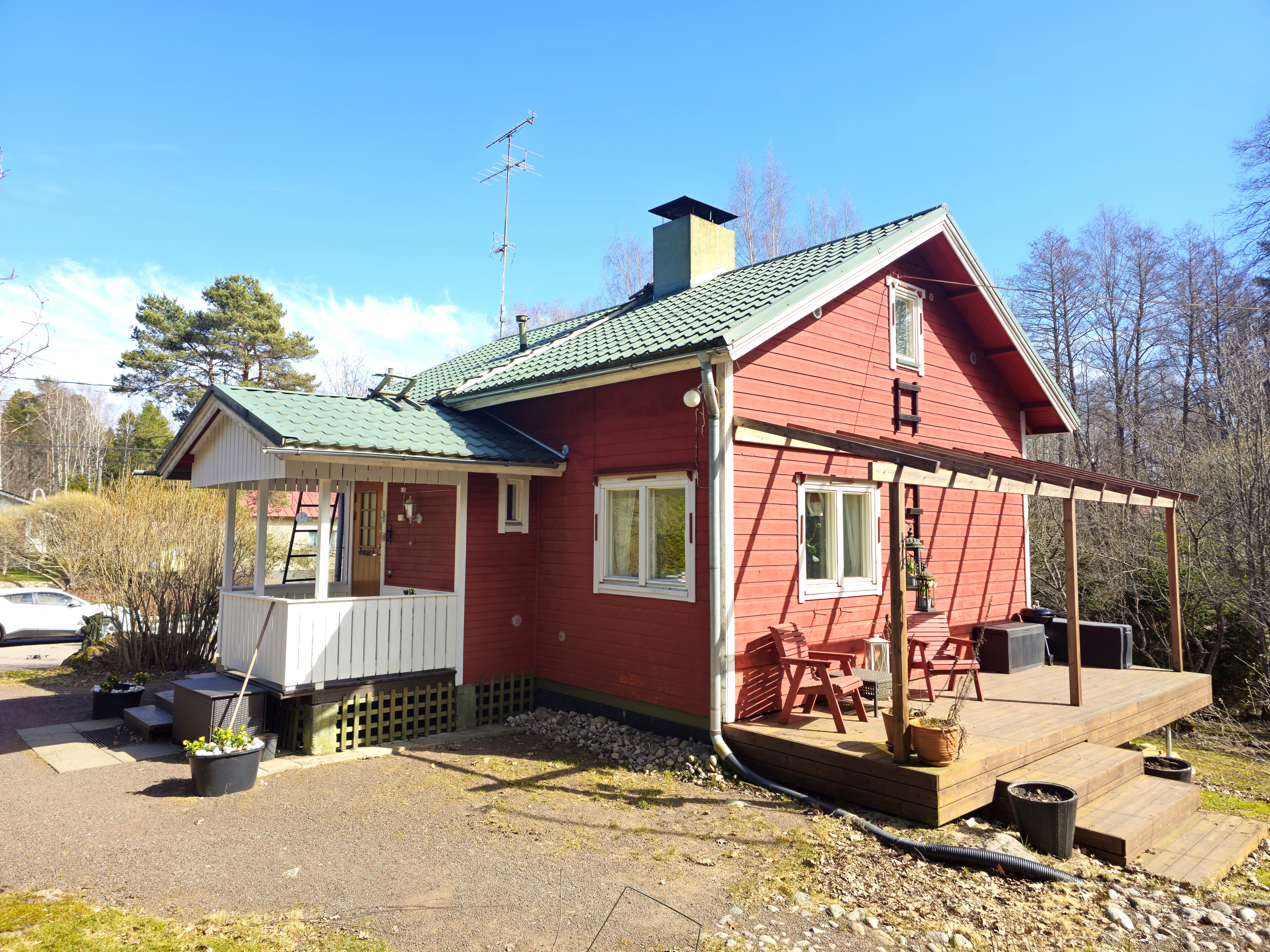 Vanhan Valkon sympaattisella pientaloalueella vuonna 1957 valmistunut ja viime vuosina kattavasti saneerattu omakotitalo. Alakerrassa on olohuone, keittiö ja yksi makuuhuone sekä kylpyhuone, osin matalahkossa yläkerrassa puolestaan makuuhuone ja sen jatkeena työhuoneena toimiva toinen huone. Tässä on oiva koti pienperheelle tai vaikkapa kakkoskodiksi hyvien liikenneyhteyksien päässä pääkaupunkiseudusta. Vehreä ja monimuotoinen pihapiiri kasvihuoneineen rajoittuu suurelta osin ympäröivään luontoon ja löylyistä saa nauttia perinteisessä pihasaunassa. Takapihalta alkavat hyvät ulkoilumaastot sekä marja- ja sienimetsät, meri, venepaikat ja uimaranta lähietäisyydellä.