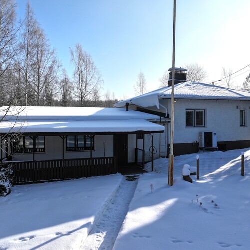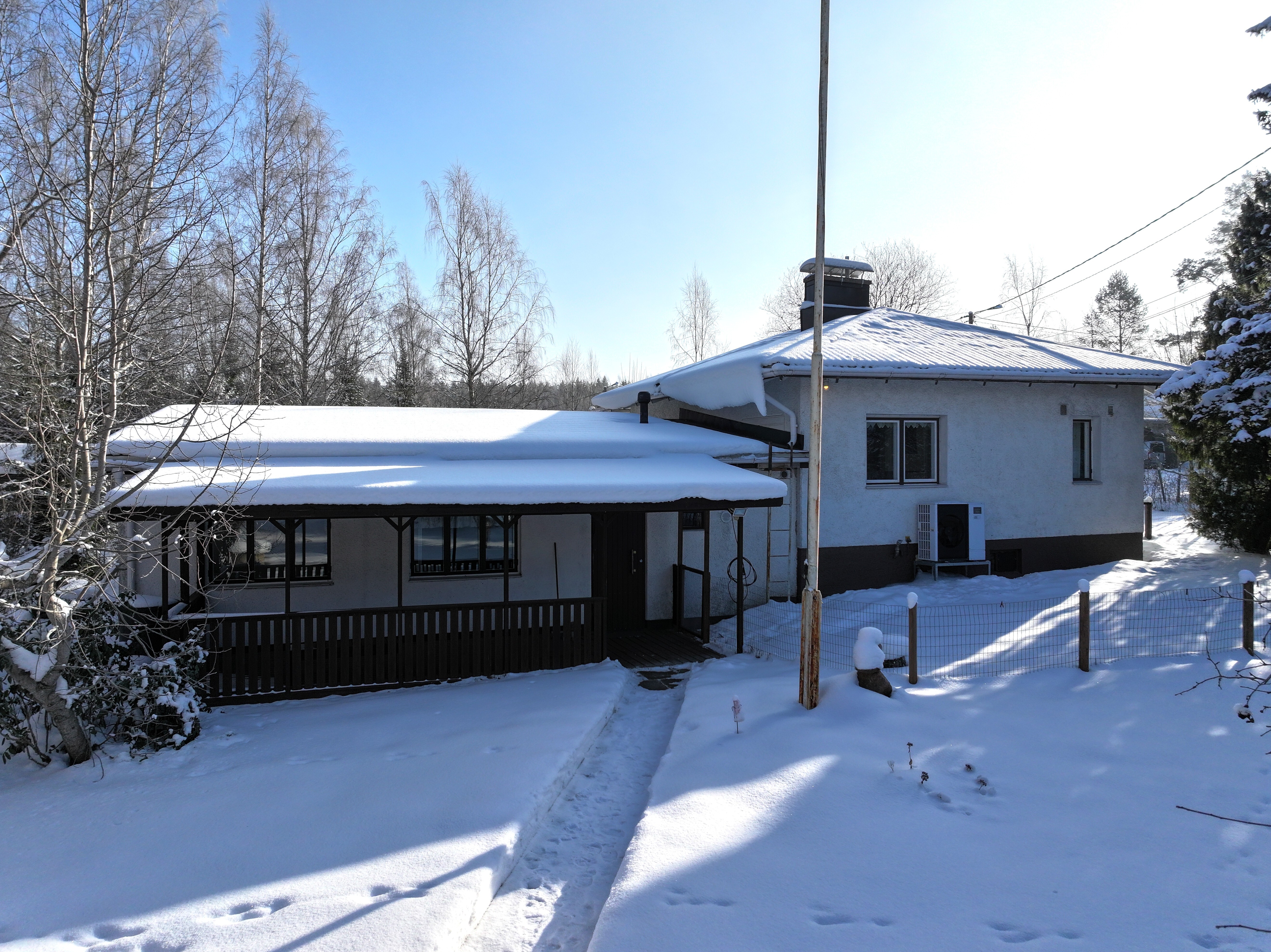 Talo lämpiää energiatehokkaalla ilmavesilämpöpumpulla ja lattialämmitys tuo mukavuutta alakerran tiloihin. Valokuituyhteys mahdollistaa sujuvan etätyön, vaikka tarvittaessa pääkaupunkiseudullekin ajaa vain tunnissa.