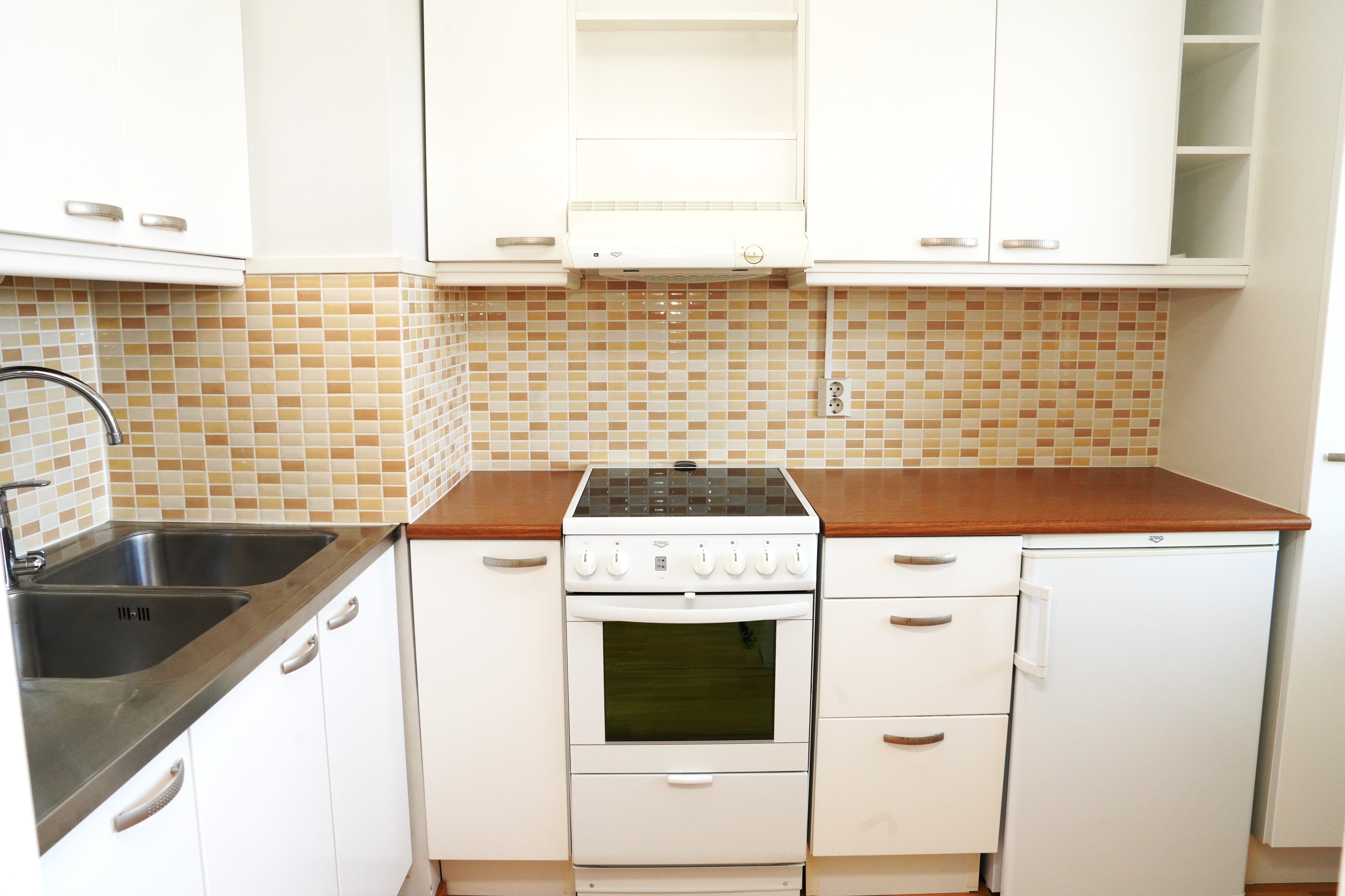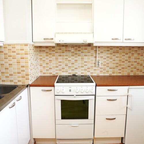 Varusteet: jääkaappi, keraaminen liesi, liesituuletin