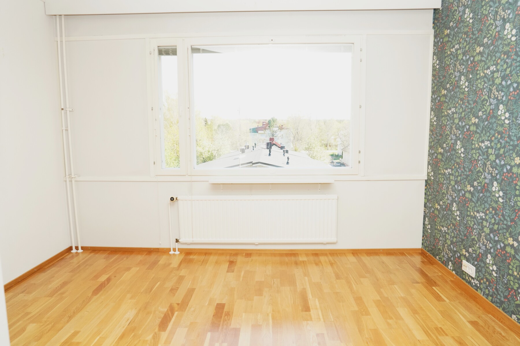 Olohuoneen isosta ikkunasta avautuu näkymä Garnisonin vanhan asuinalueen suuntaan.