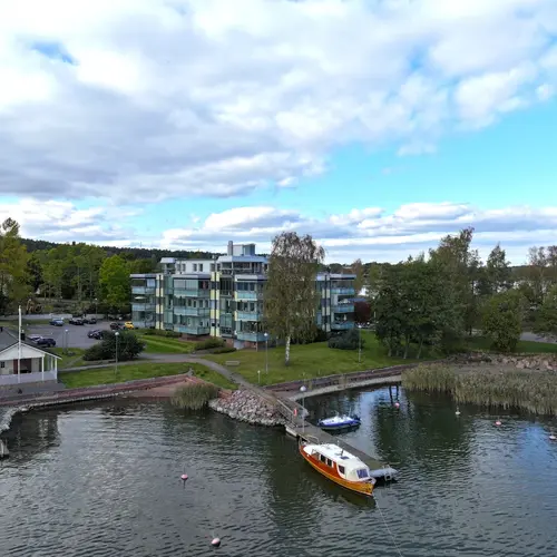 Taloyhtiöllä rantasauna, avanto talvisin. Osakkailla mahdollisuus liittyä erilliseen laituriosuuskuntaan ja myyjällä on osuus/laituripaikka, joka myytävissä erikseen.