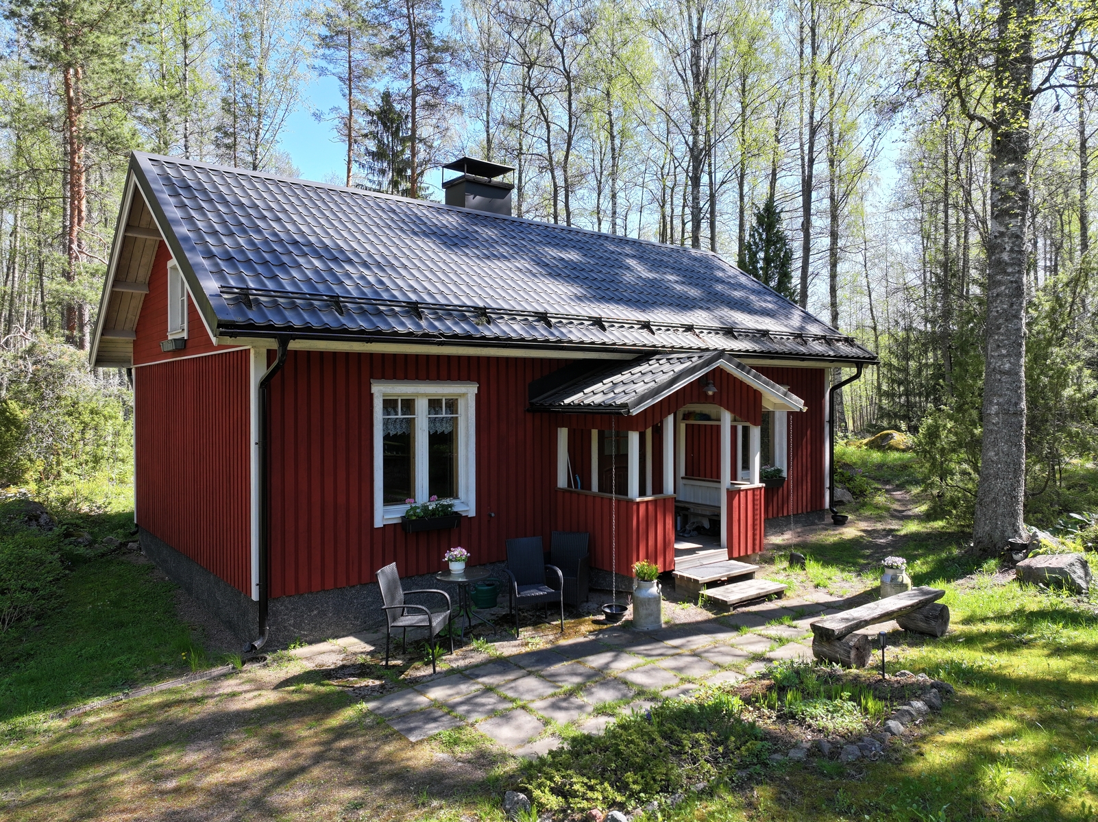 Ympärivuotiseen oleskeluun mainiosti suunniteltu ja soveltuva vapaa-ajankoti, jonka pääkerroksessa on olohuone, avokeittiö, kaksi makuuhuonetta ja kylpyhuone sekä sauna. Yläkerrassa on hulppea parvi, jonne saa makuutilat useammallekin yöpyjälle. Mökin helppohoitoisessa ja kauniissa pihapiirissä on autotalli, vaja ja huussi täydentämässä kokonaisuutta. Käytännössä omalta pihalta saa poimittua marjat ja sienet, eikä kiinteistön oma merenrannassa sijaitseva venepaikkakaan ole kaukana. Pääkaupunkiseudulta tänne ajaa pääosin moottoritietä n. tunnissa eli ei ihme, että moni muuttaa varsinkin kesäksi mökille helpon työmatkan tai etätöiden ansiosta.