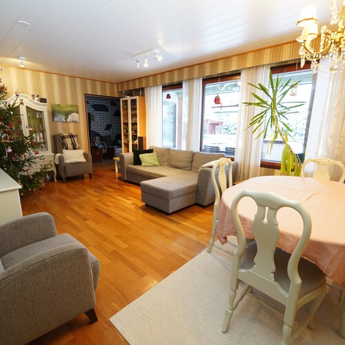 Lapinjärvellä sijaitseva omakotitalo, joka soveltuu hyvin esimerkiksi lapsiperheelle. Taloa on vuosien mittaan saneerattu ja makuu-, kylpy- sekä takkahuone ja sauna ovat kokeneet uudistukset 2000-luvun puolella. Päärakennuksen ja siinä olevan lämpimän autotallin lisäksi pihapiirillä sijaitsee autotalleilla ja kahdella varastohuoneella varustettu talousrakennus sekä saunarakennus, jossa on myös kesähuone. Suojaisa pihapiiri rajoittuu suurimmilta osin peltoon ja tuo tämän myötä omaa rauhaa pihatouhuille ja oleskelulle.