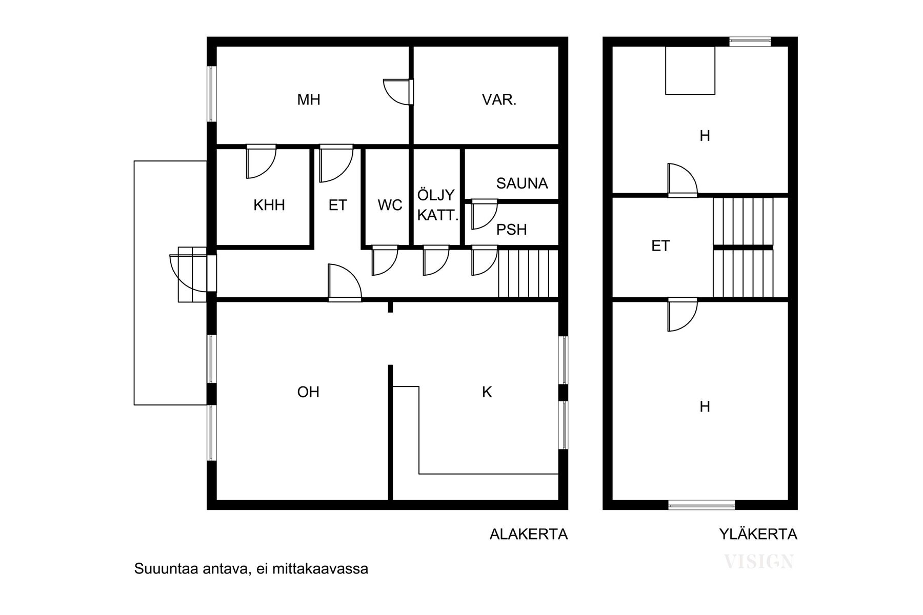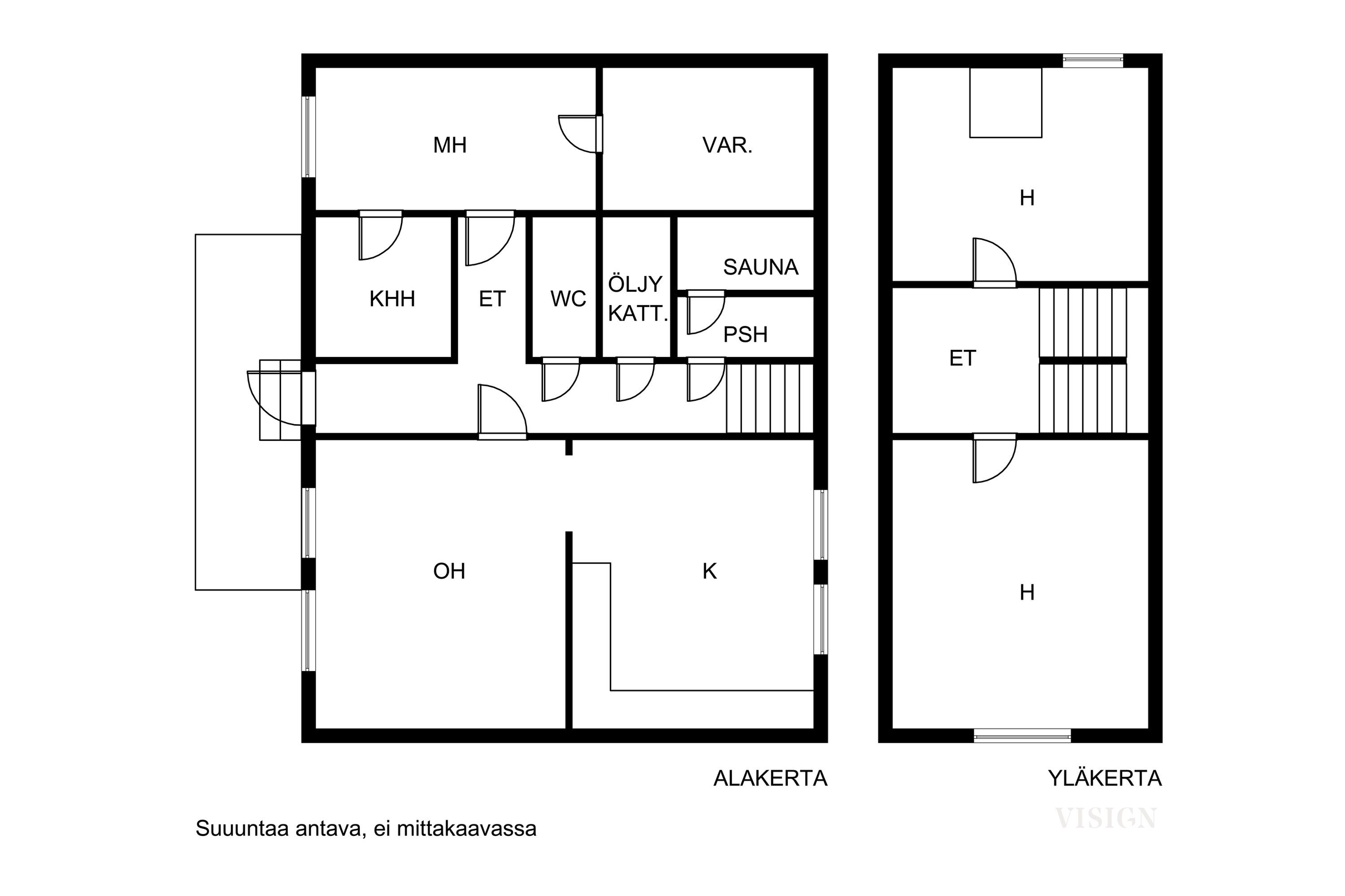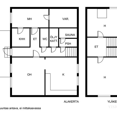 Alakerrassa yksi, yläkerrassa kaksi makuuhuonetta