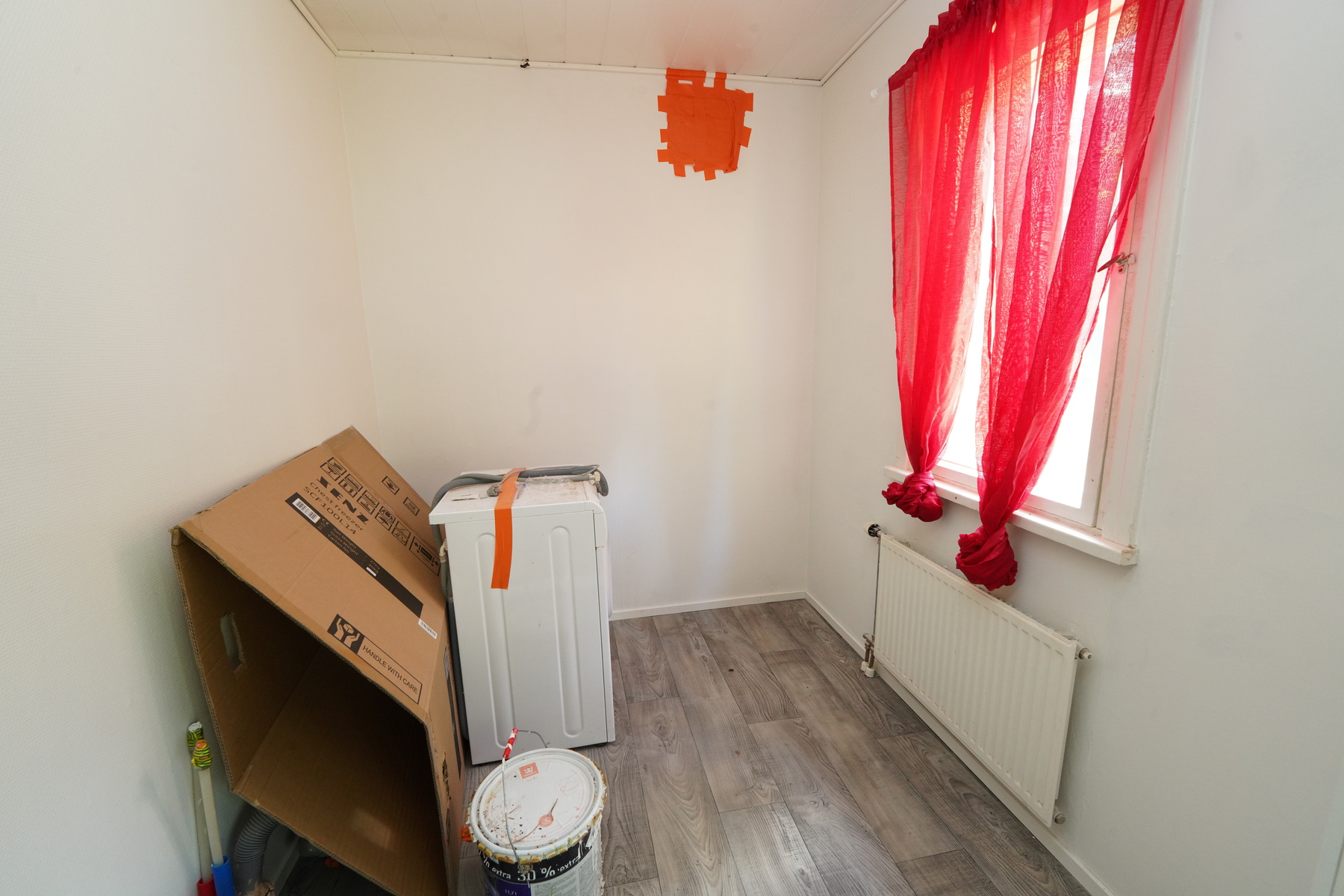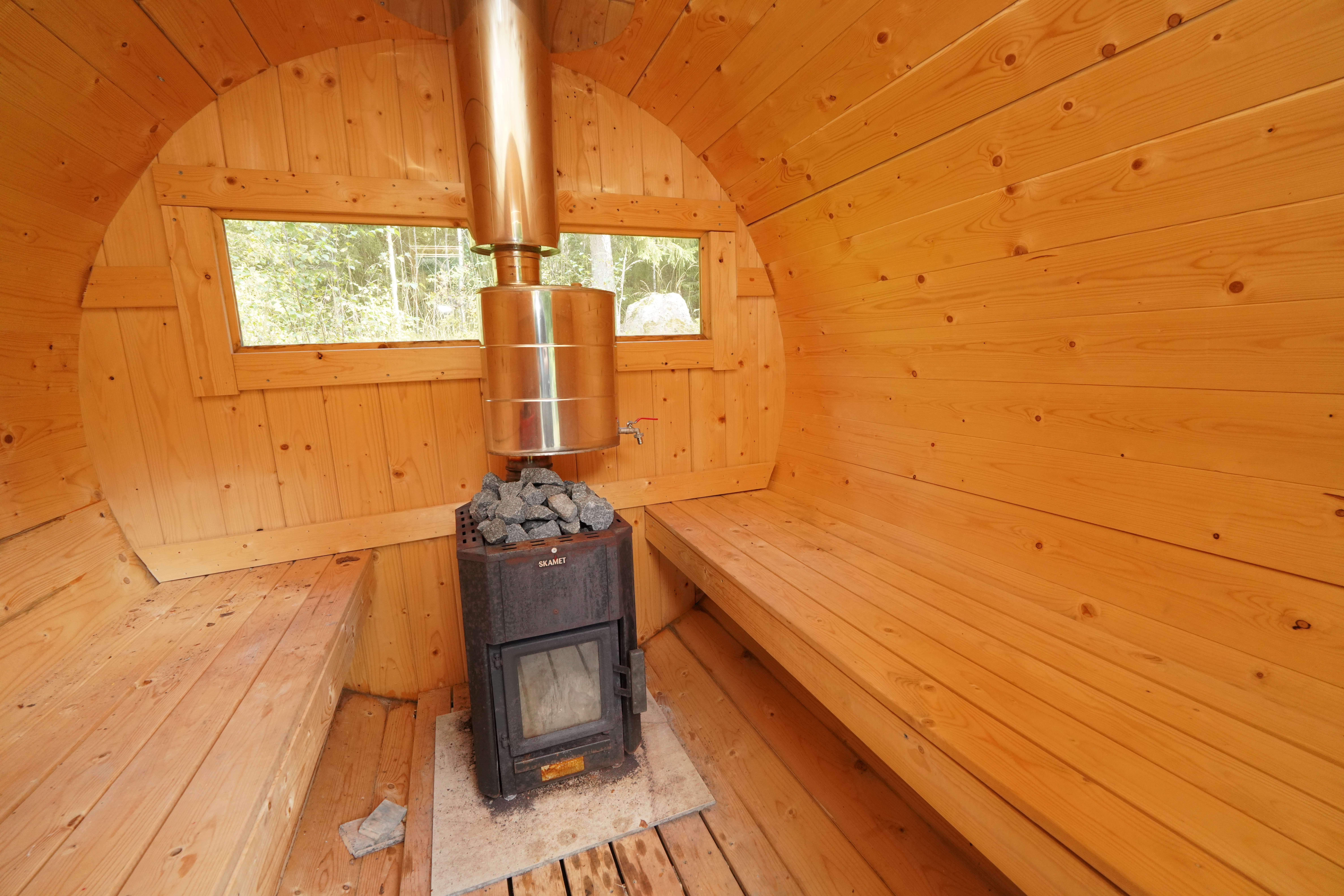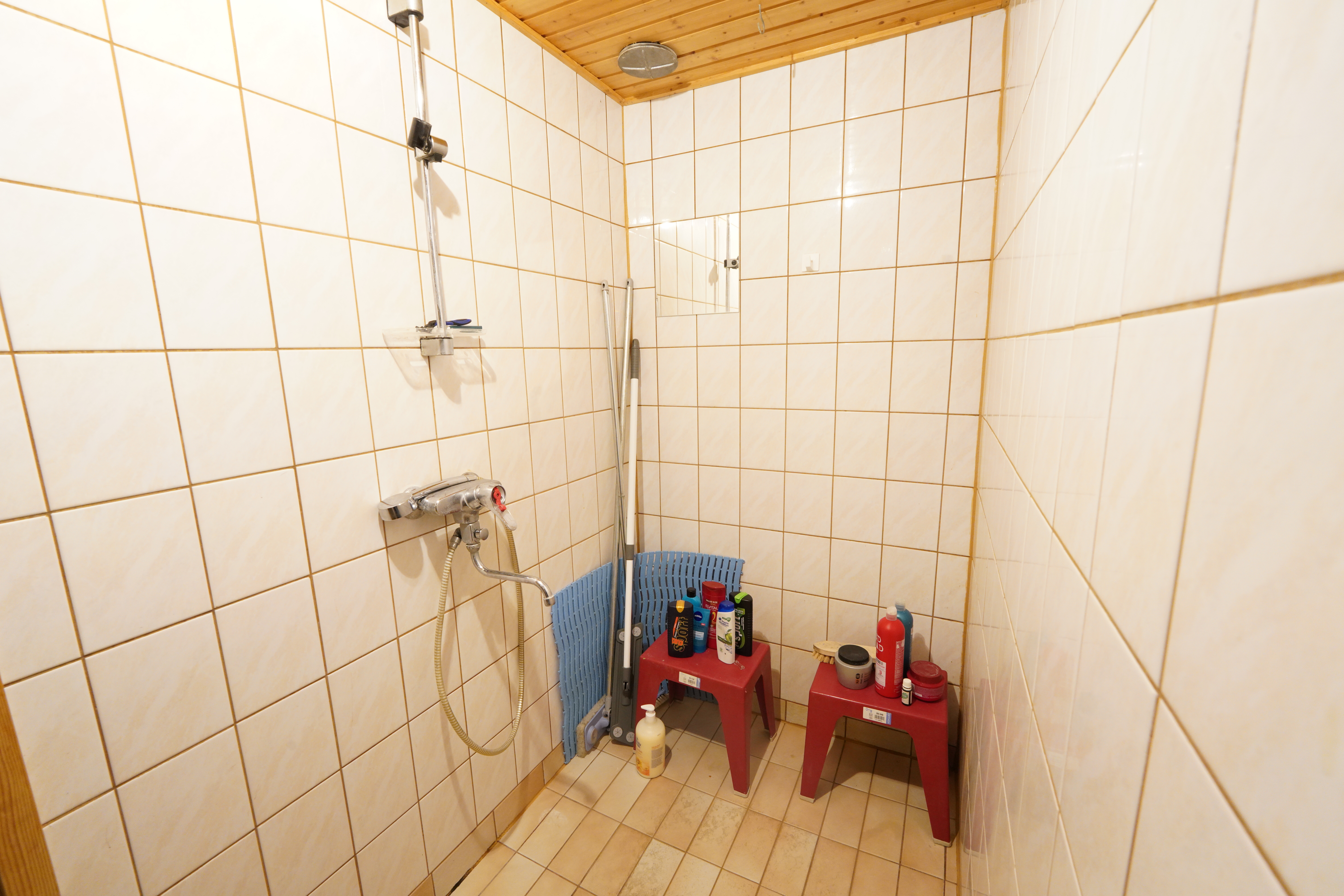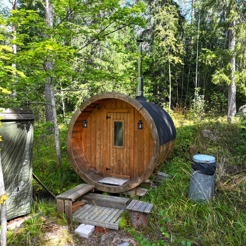 Tämän kaksikerroksisen kodin alakerrasta löytyy keittiö, olohuone ja yksi makuuhuone sekä saunatilat, kun taas yläkerrassa on kaksi lisämakuuhuonetta. Sisätiloissa saneerauksen viimeistely on hieman kesken – esimerkiksi kodinhoitotila. Kahdesta vierekkäisestä kiinteistöstä muodostuvalla isolla tontilla on päärakennuksen lisäksi erillinen, uudehko tynnyrisauna sekä viihtyisä kota.