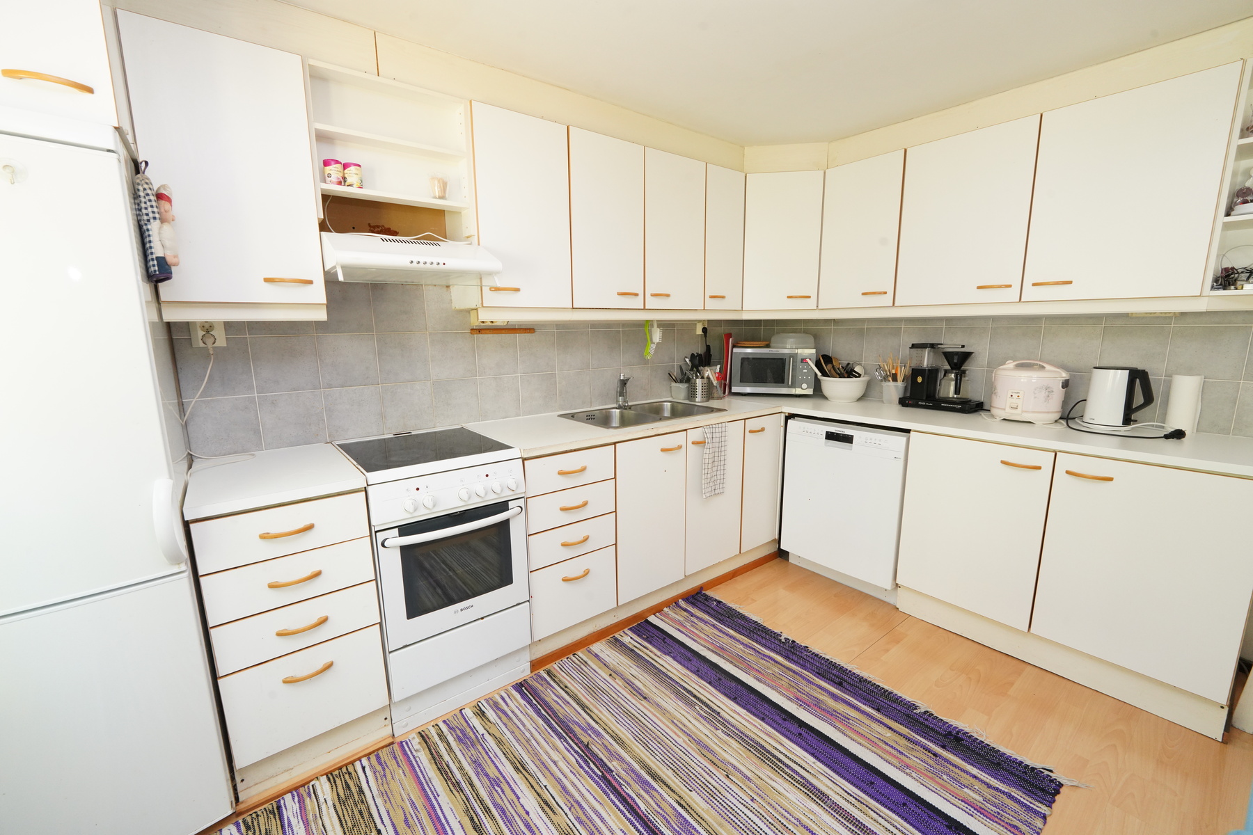 Varusteet: jääkaappipakastin, astianpesukone, liesituuletin, erillisuuni, keraaminen liesi