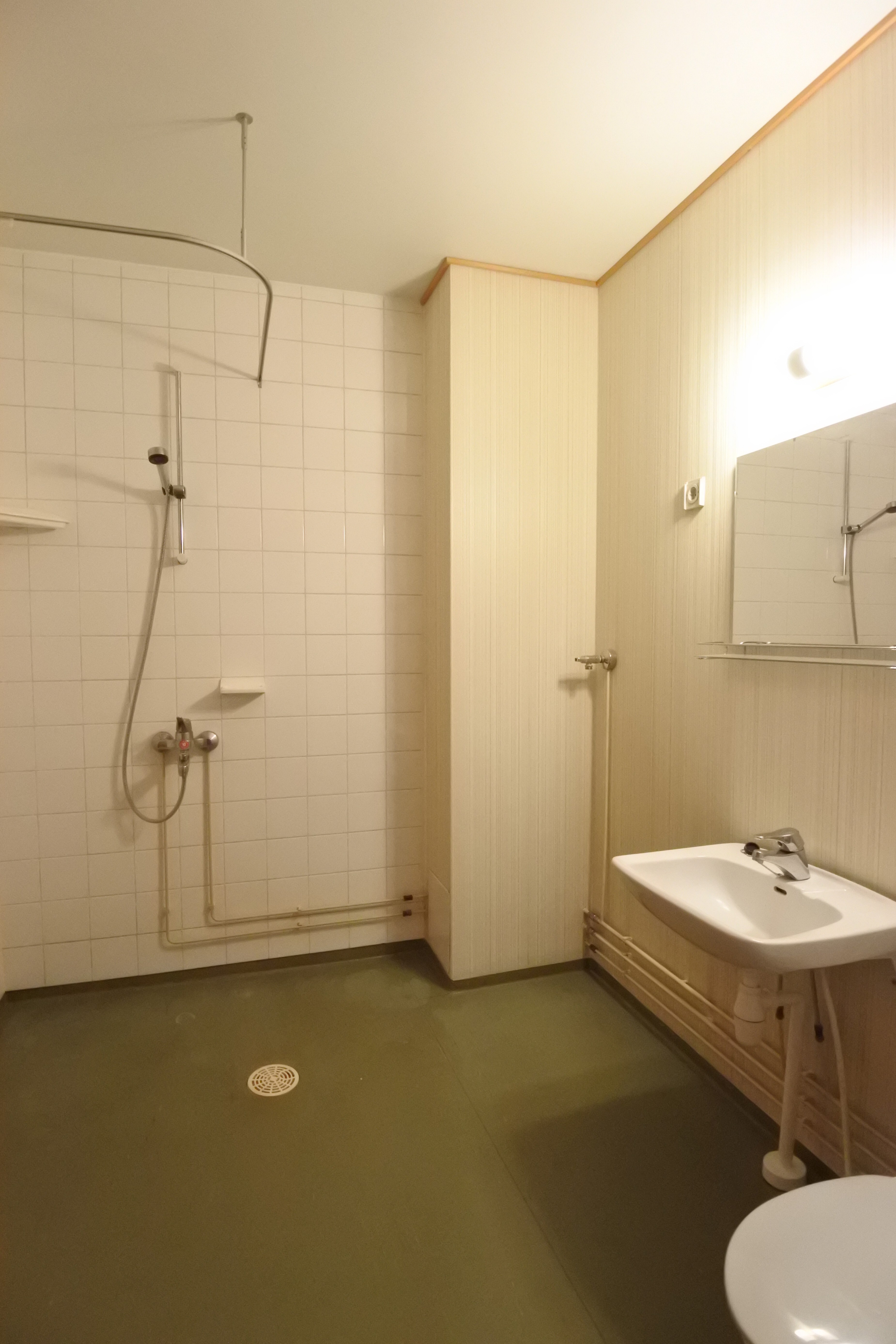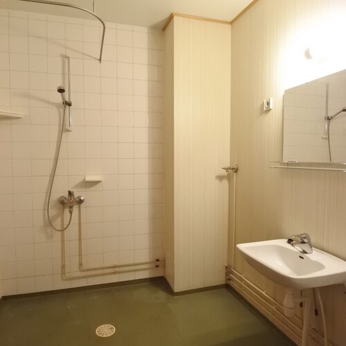 Varusteet: suihku, pesukoneliitäntä, kylpyhuonekaapistot, peili