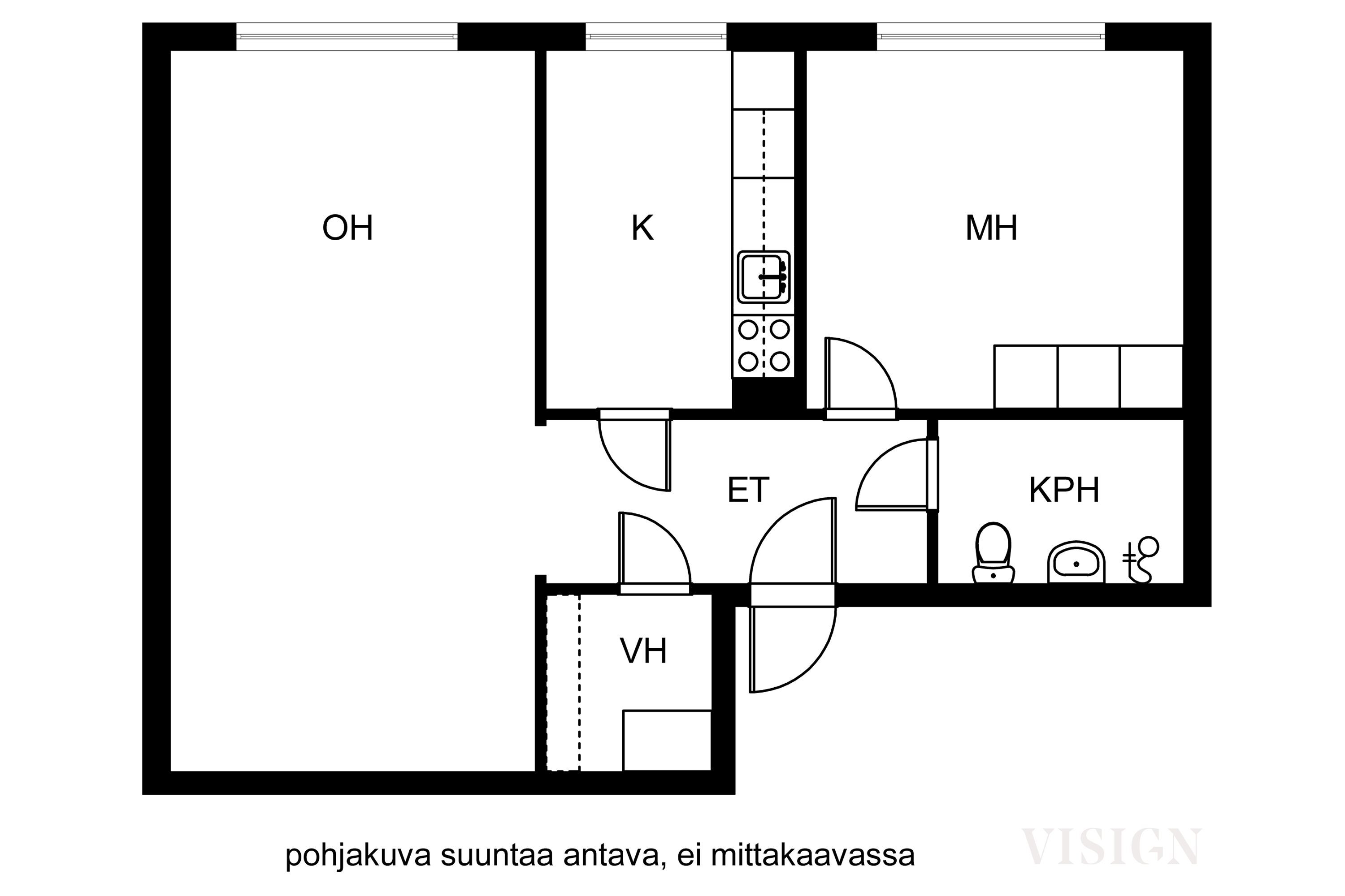 Varusteet: jääkaappipakastin, sähköliesi, liesituuletin