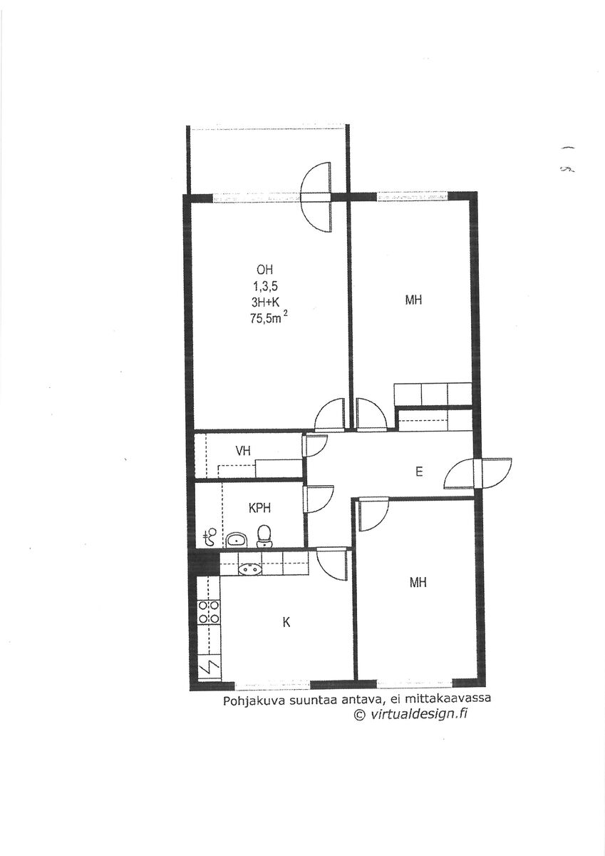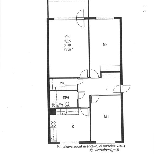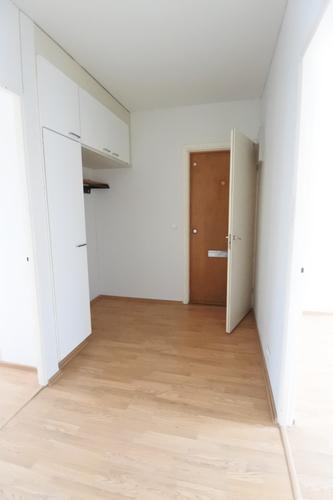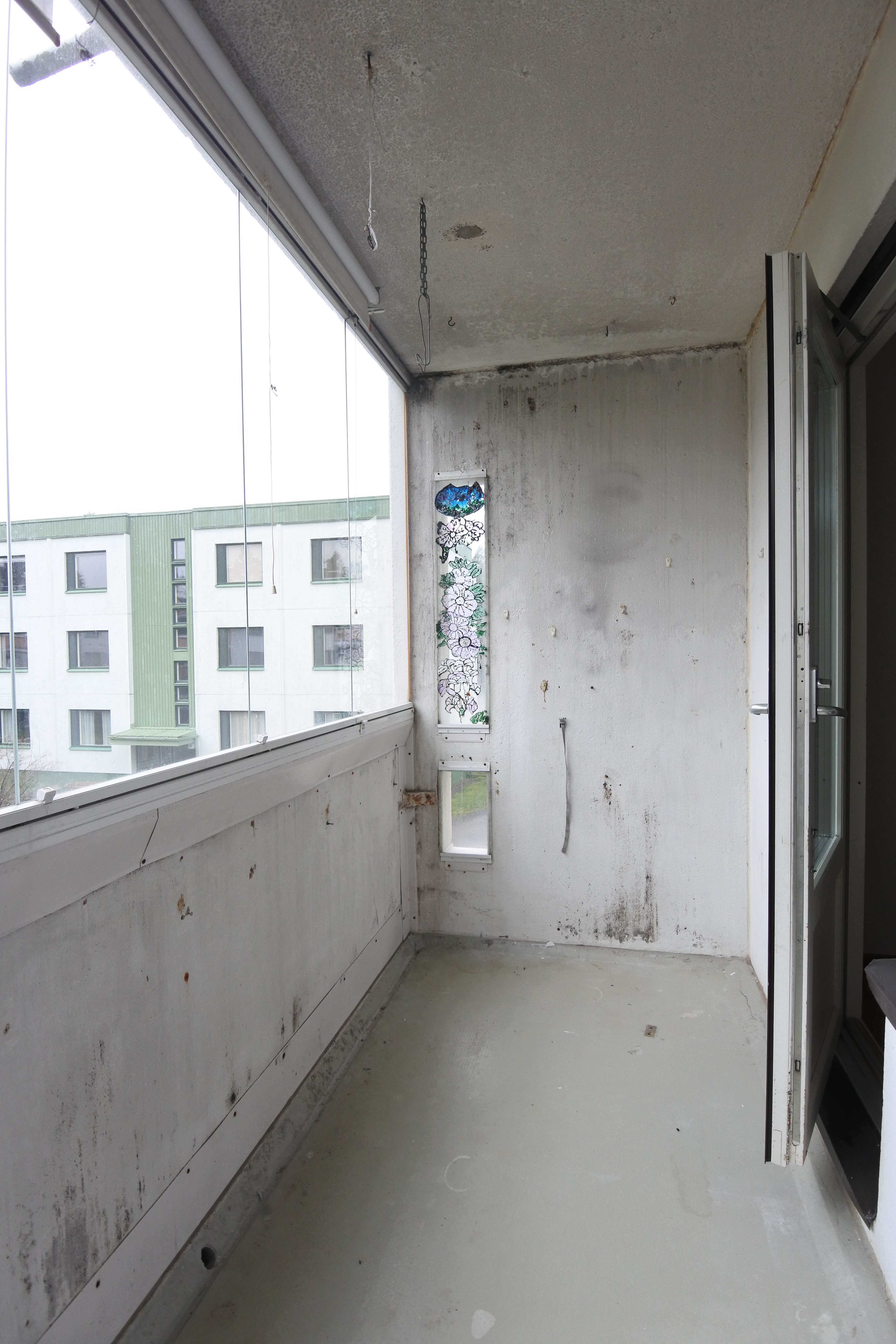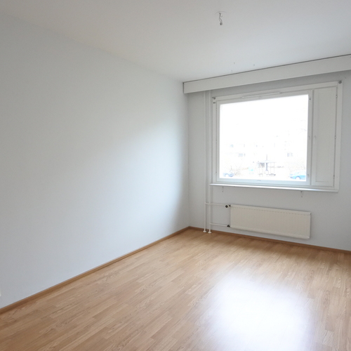 Asunnon pohjaratkaisu on hyvä, ei hukkaneliöitä. Vaatehuone helpottaa järjestyksen pitämistä, ja etelään avautuva lasitettu parveke tuo valoisuutta kotiin.