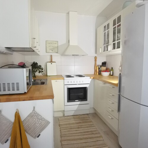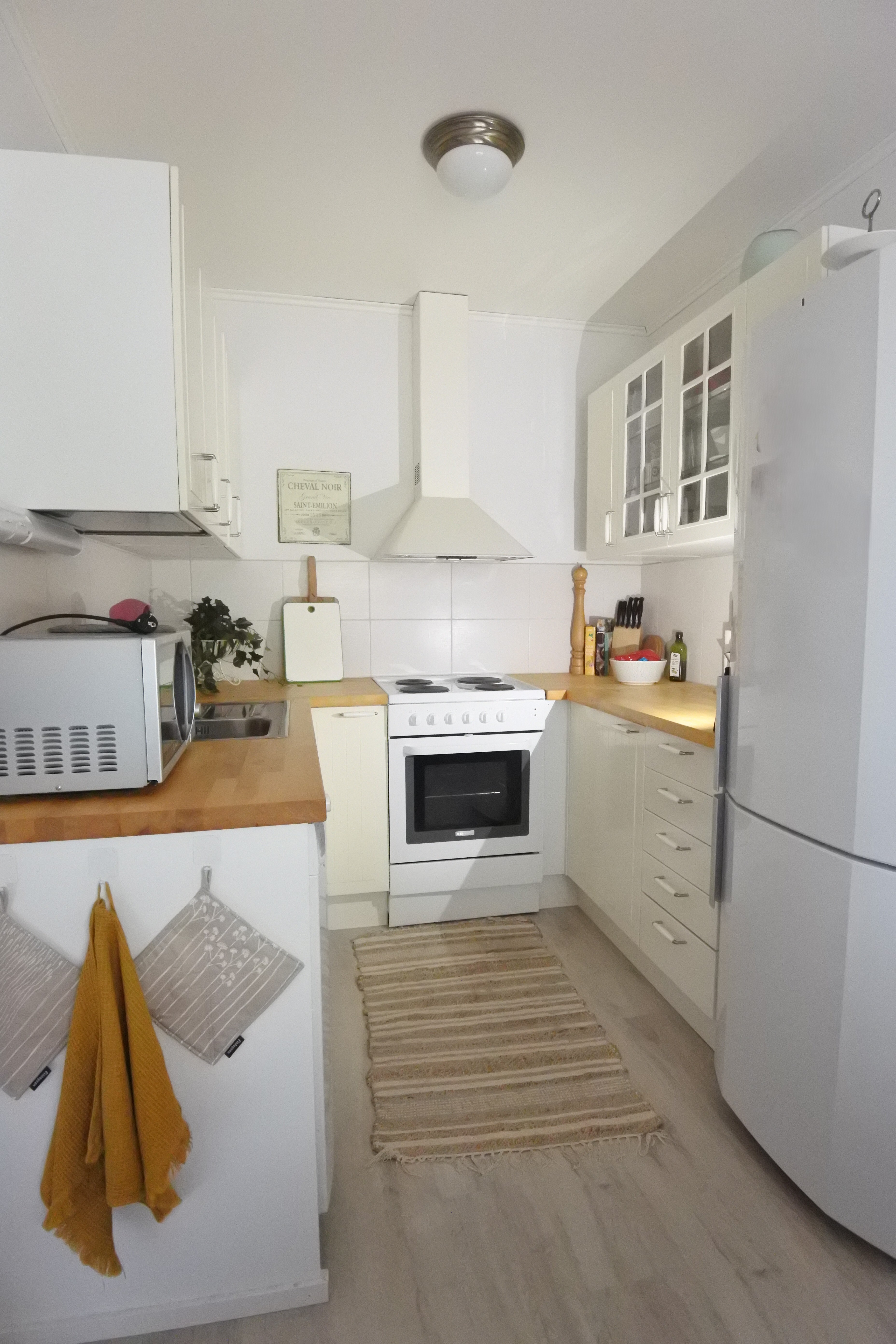 Varusteet: jääkaappipakastin, astianpesukone, sähköliesi, liesituuletin